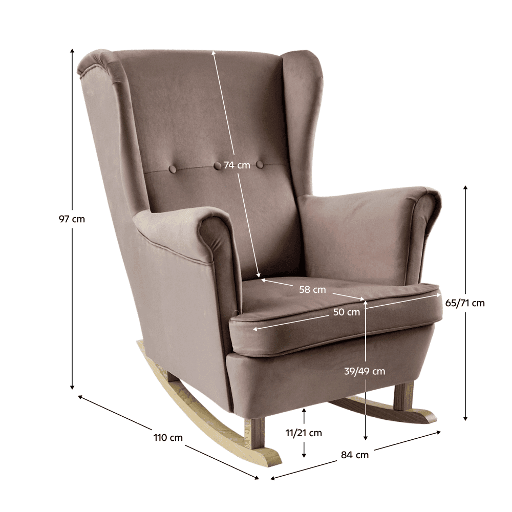 Material tapiţerie: ţesătură Kronos 27 Rezistenţa ţesăturii conform testului Martindale: 50.000 de cicluri de frecare Culoare tapiţerie: roz Material picior: lemn Culoare picioare: fag Dimensiuni scaunului (Lxlxh): 84x110x97 cm Înălţimea părţii de şezut: 39/49 cm Adâncime părţii de şezut: 58 cm Înălţimea compartimentului inferior de la podea: 11-21 cm Spătar înalt Înălţimea spătarului: 74 cm Înălţime cotieră: 65/71 cm Lăţime părţii de şedere: 50 cm Portanţă: 120 kg Umplutură: spumă pur Tapiţată integral de balansat De design Confortabil Livrat dezasamblat
