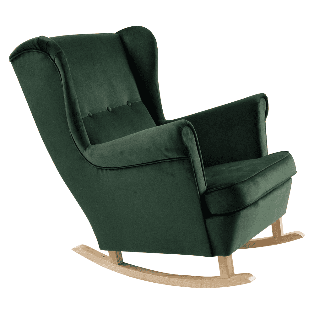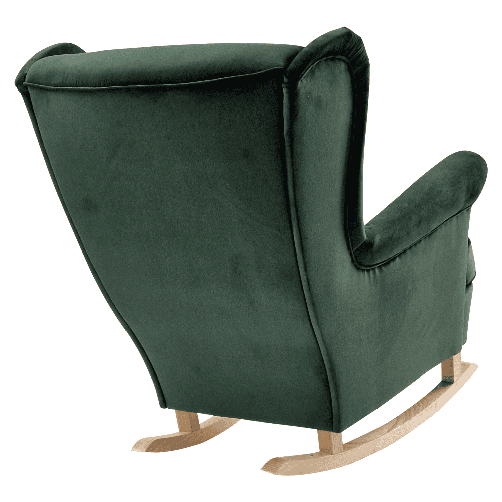 Material tapiţerie: ţesătură Kronos 14 Rezistenţa ţesăturii la frecare conform testului Martindale: 50.000 de cicluri de frecare Culoare tapiţerie: verde Material picioare: lemn Culoare picioare: fag Dimensiuni scaunului (Lxlxh): 84x110x97 cm Înălţimea părţii de şezut: 39/49 cm Adâncime părţii de şezut: 58 cm Înălţimea compartimentului inferior de la podea: 11-21 cm Spătar înalt Înălţimea spătarului: 74 cm Înălţime cotieră: 65/71 cm Lăţime părţii de şedere: 50 cm Portanţă: 120 kg Umplutură: spumă pur Tapiţată integral de balansat De design Confortabil Livrat dezasamblat