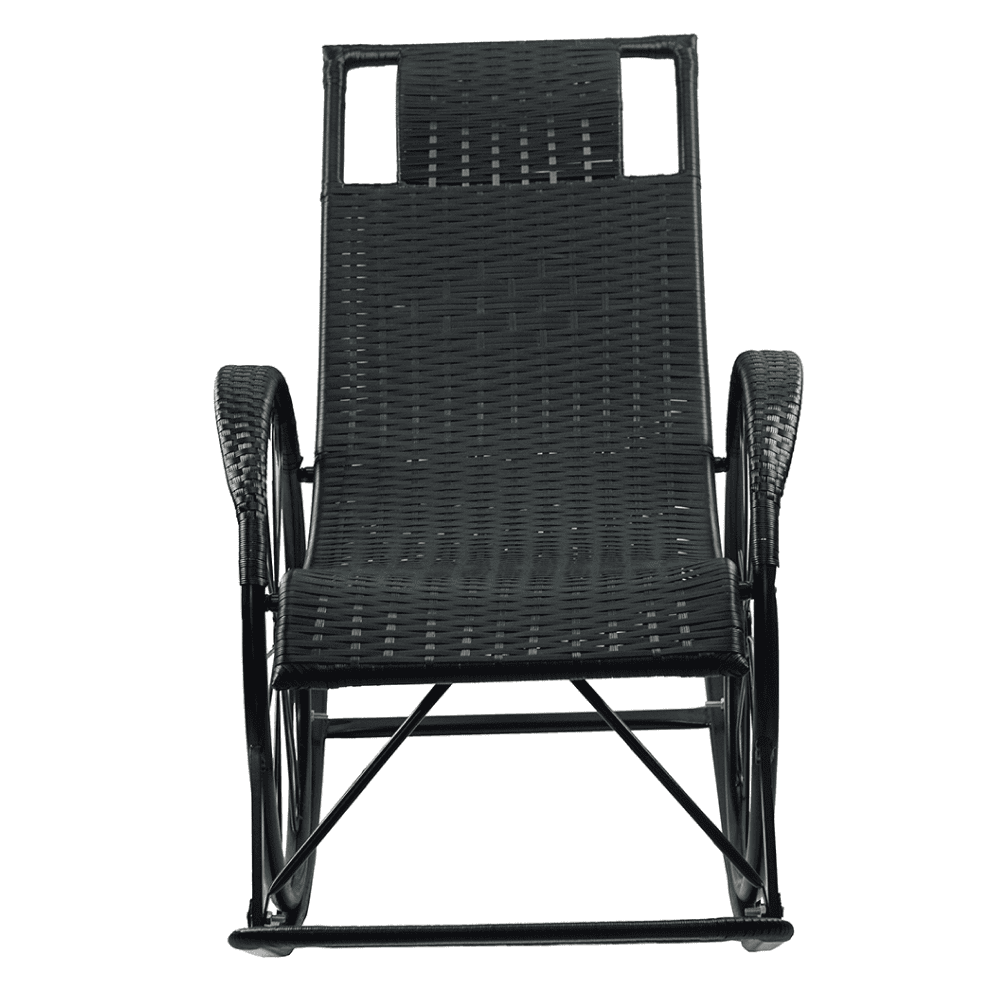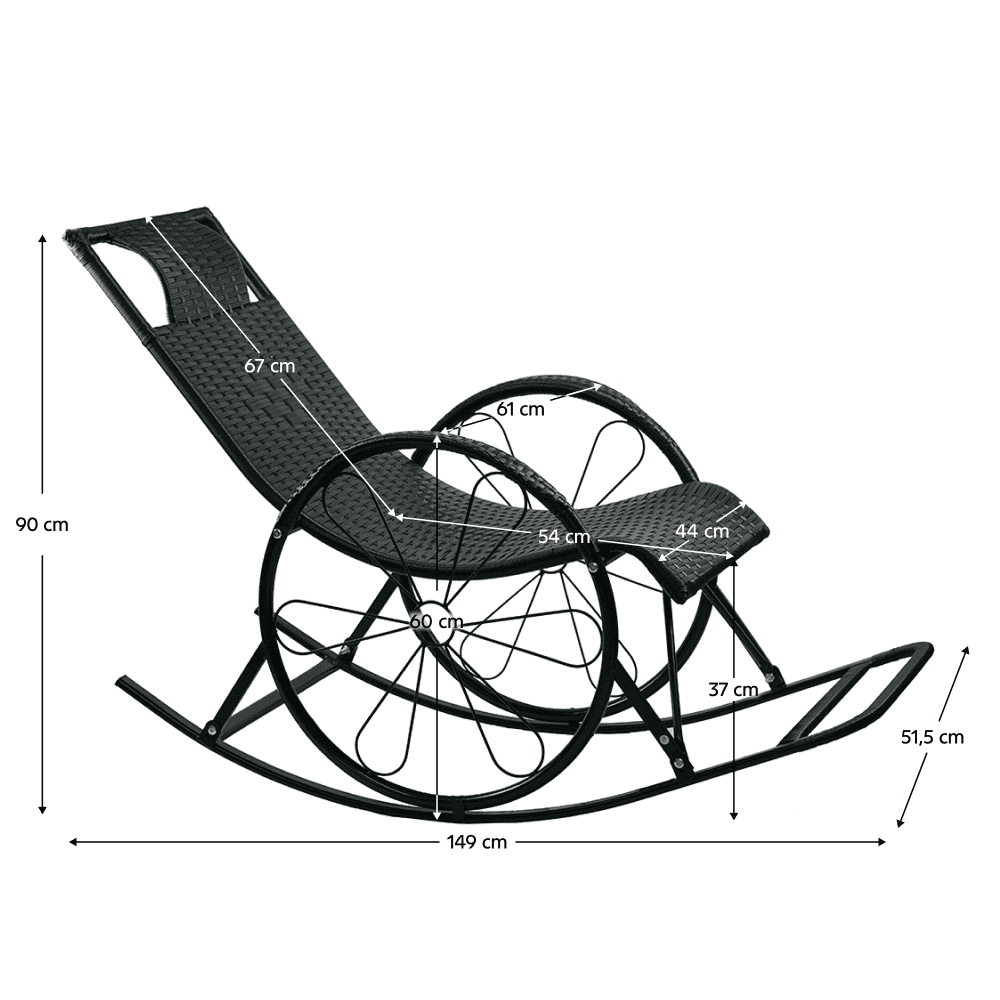 Scaun balansoar, ratan/metal, negru, ROKIN
