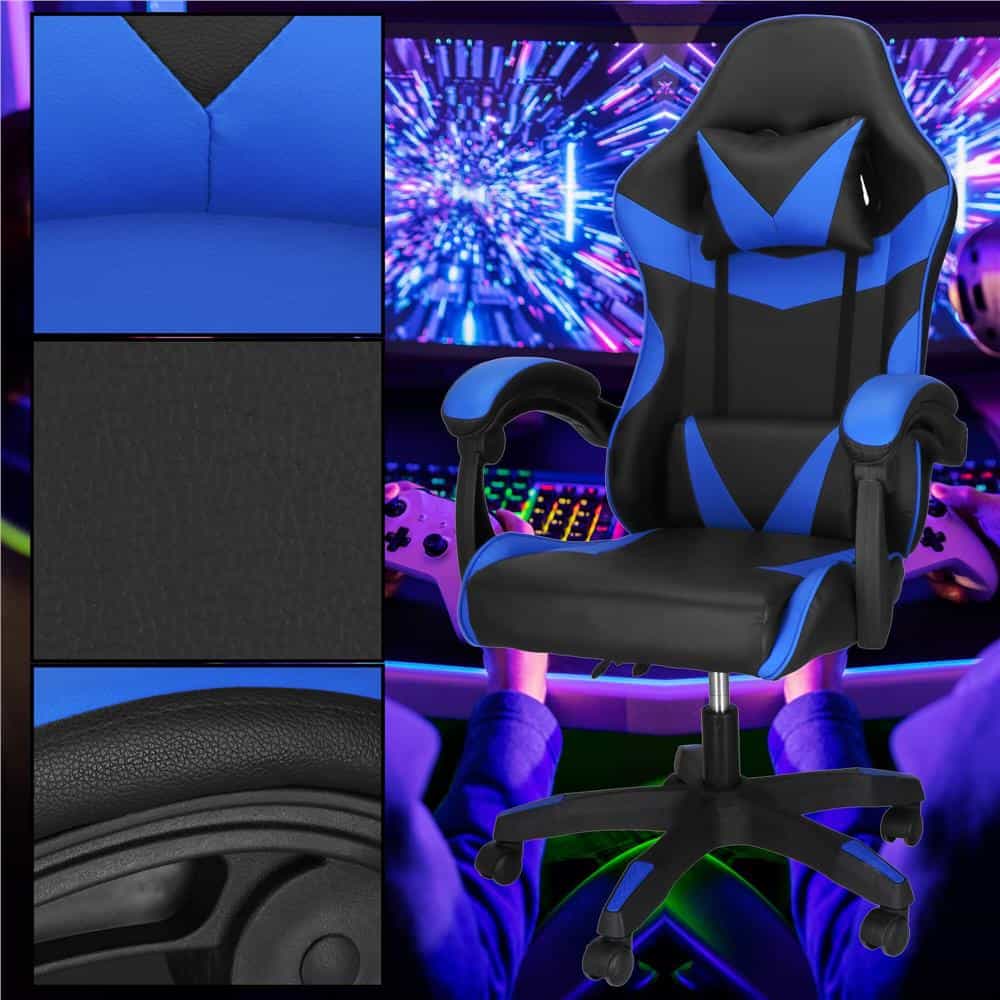 Scaun birou pentru gaming, ergonomic, suport lombar si tetiera, 114-123x55x50 cm, negru si albastru Mob360