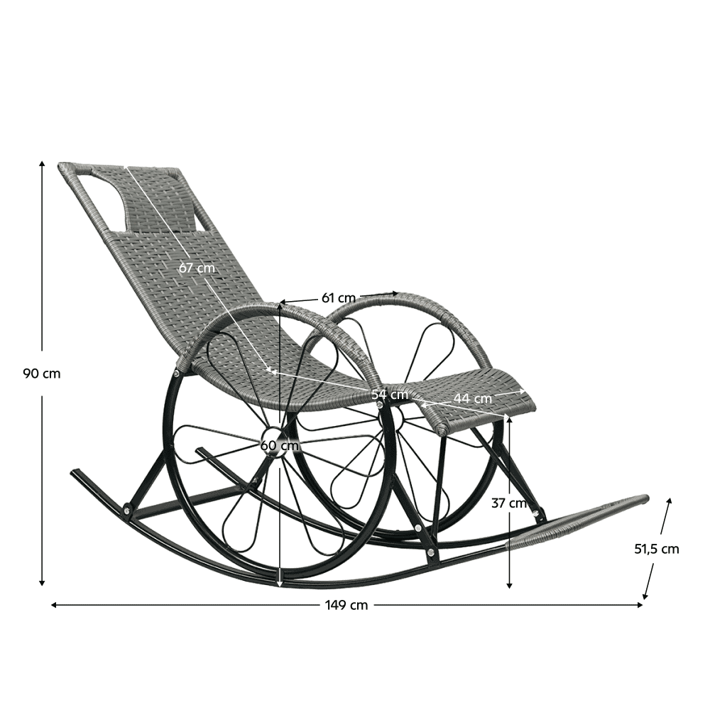 Cu balansare De relaxare Confortabil Cotiere în formă de roată Potrivit pentru interior şi pe terase acoperite Vă recomandăm să protejaţi produsul de condiţiile meteorologice dificile pentru a prelungi durata de viaţă a produsului Livrat dezasamblat