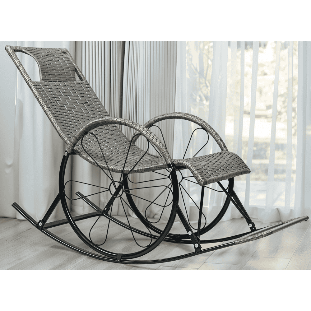 Scaun de balansare, ratan/metal, gri, ROKIN