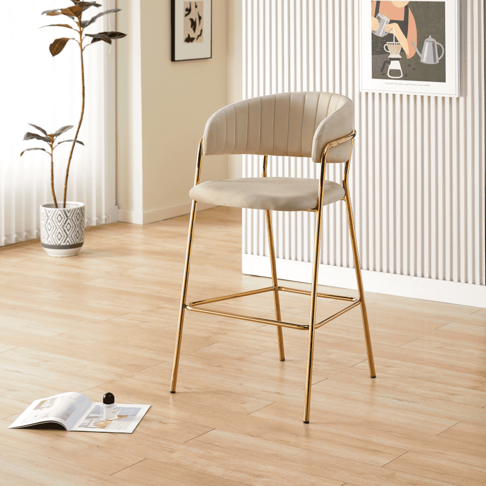 Scaun de bar de design, ţesătură bej Velvet/gold crom auriu, DASMIN NEW TIP 2