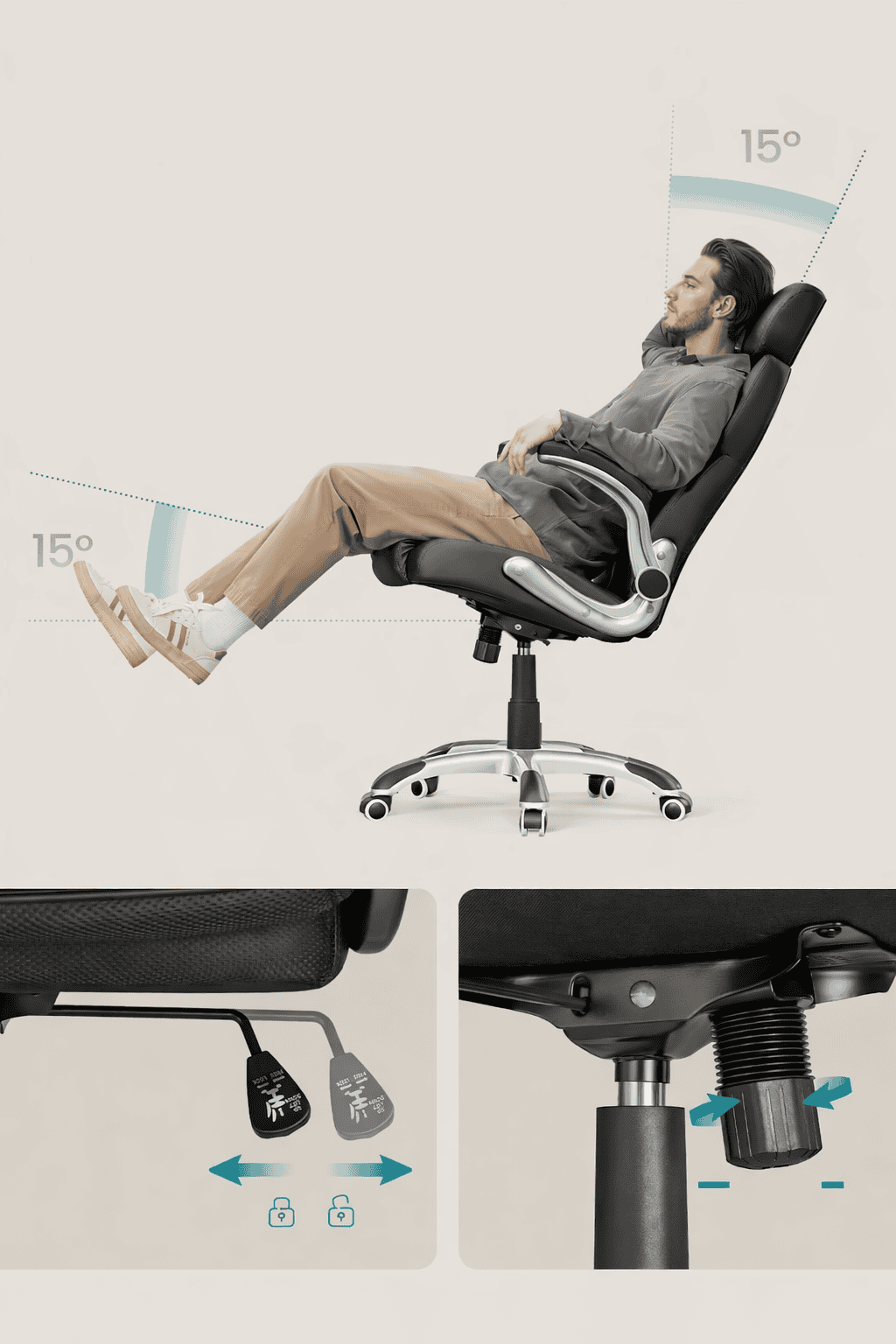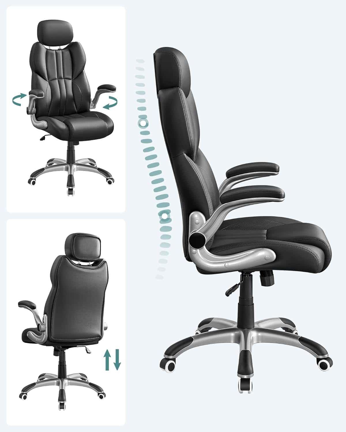 - Scaunul de birou SONGMICS este proiectat pentru confort si flexibilitate maxima in timpul lucrului. Cu design ergonomic, sezut moale si suport pentru cap reglabil, ofera sustinere optima pe durata intregii zile. Bratele rabatabile economisesc spatiu, iar materialele de calitate asigura durabilitate si intretinere usoara. Caracteristici principale: