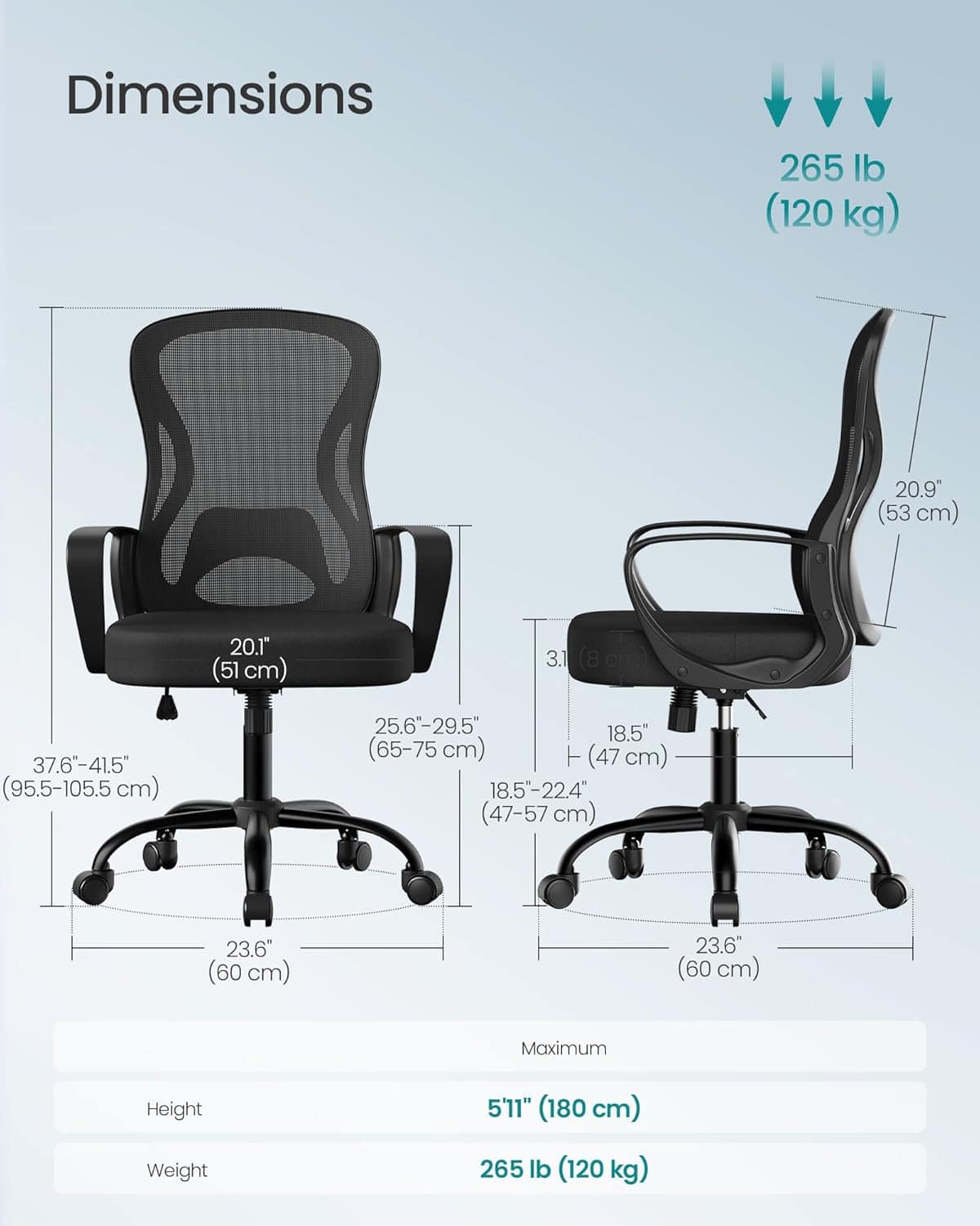 Scaun de birou ergonomic, spatar mesh cu suport lombar, reglabil pe inaltime, baza metalica, 60x60x106 cm, negru Mob360