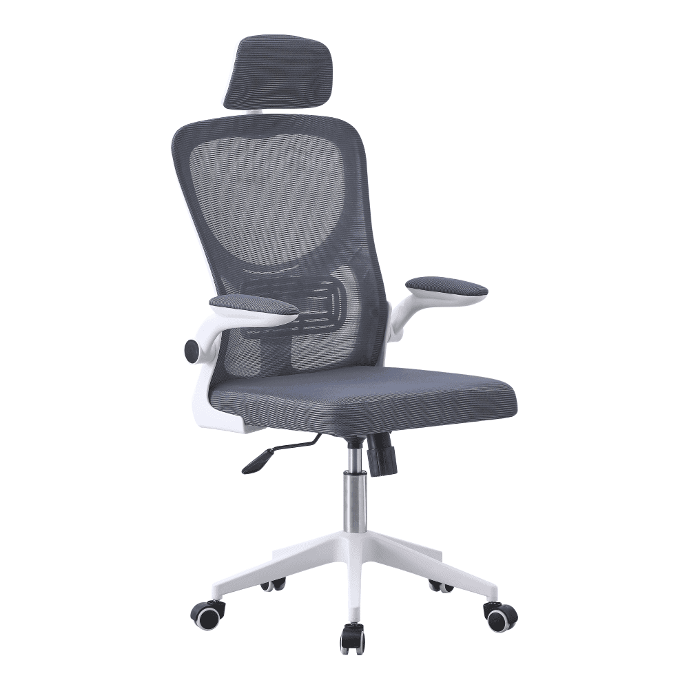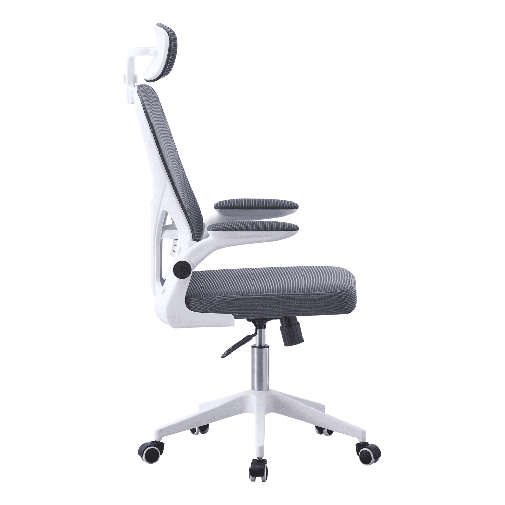 Material: plasă /plastic Rezistenţa ţesăturii la frecare conform testului Martindale: 90.000 de cicluri de frecare Culoare: gri/albă Dimensiuni (Lxlxh): 60x64x115-125 cm Înălţime reglabilă a scaunului: 48-57 cm, Adâncime scaun: 48 cm Lăţime scaun: 47 cm Lăţime spătar: 50 cm Înălţime spătar: 71 cm Portanţă: 100 kg Greutate: 8,2 kg Cotiere din plastic Cotiere pliabile Cotiere pliabile Tetieră reglabilă pe înălţime Reglaj pe înălţime şi balans Mecanism de balansare Baza din plastic alb Roţi universale Potrivit atât pentru podele moi, cât şi pentru podele dure Livrat dezasamblat