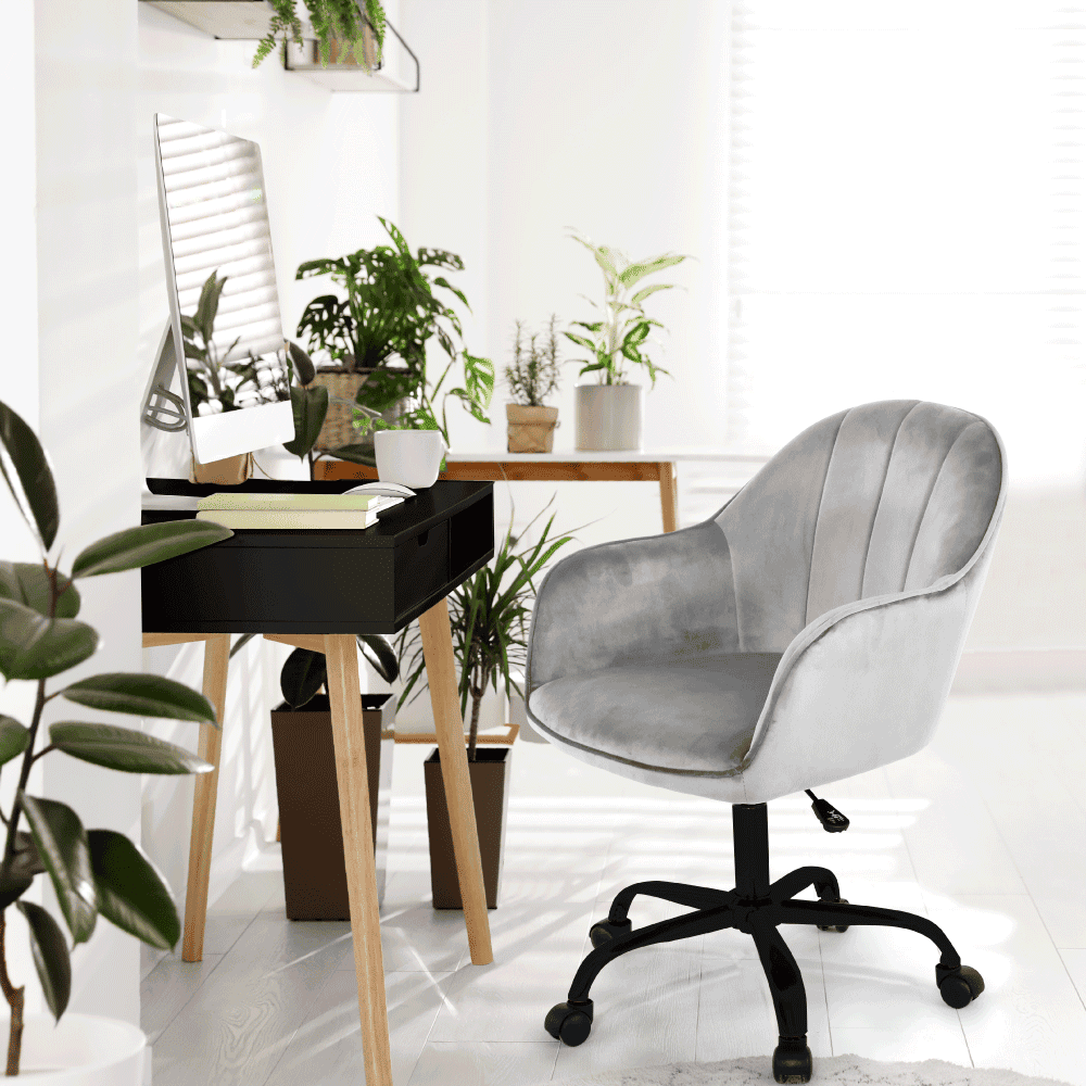Scaun de birou, material textil din catifea gri deschis / negru, EROL