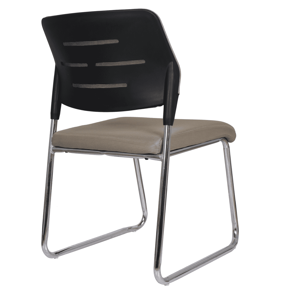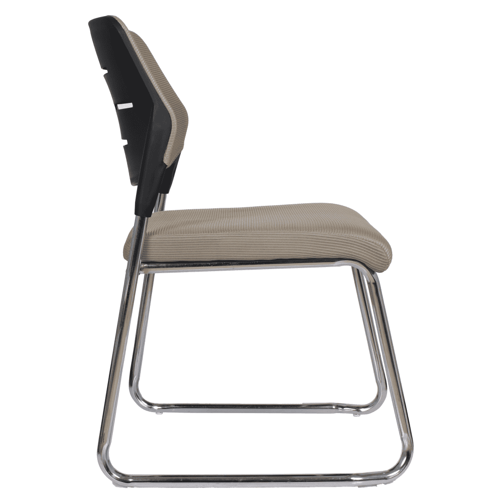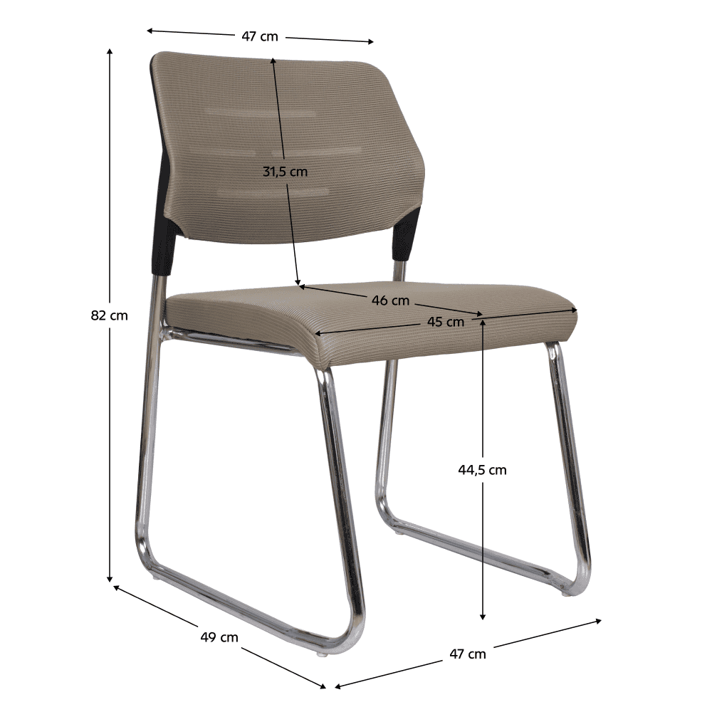 Material tapiţerie: plasă/plastic/metal Rezistenţa ţesăturii conform testului Martindale: 90 000 de cicluri de frecare Culoare: maro deschis/neagră Dimensiuni (lxAxh): 47x49x82 cm Înălţimea părţii de şezut: 44,5 cm Adâncimea părţii de şezut: 46 cm Lăţimea părţii de şezut: 45 cm Înălţime spătar: 31,5 cm Lăţime spătar: 47 cm Portanţă: 70 kg Bază cromată Stivuibil Posibilitate de suprapunere max. 4 bucăţi De conferinţe Livrat dezasamblat