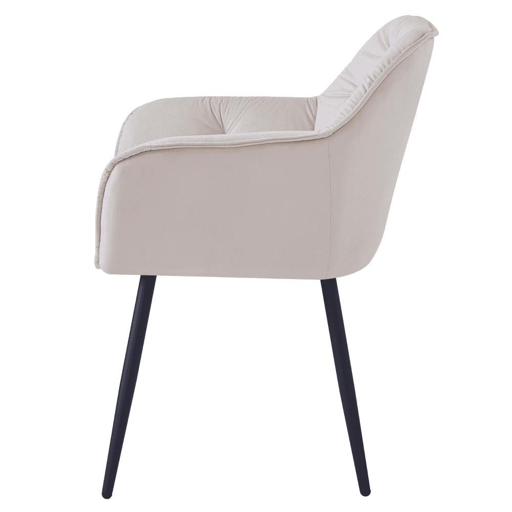 Material: ţesătură Velvet/metal Rezistenţa ţesăturii la frecare conform testului Martindale: 80 000 de cicluri de frecare Culoare: bej/neagră Dimensiuni (lxAxh): 61.5×59,5×80 cm Înălţimea părţii de şezut: 47,5 cm Adâncimea părţii de şezut: 45 cm Lăţimea părţii de şezut: 44 cm Lăţime spătar: 46 cm Înălţime spătar: 32,5 cm Portanţă: 100 kg De design Matlasat Livrat dezasamblat