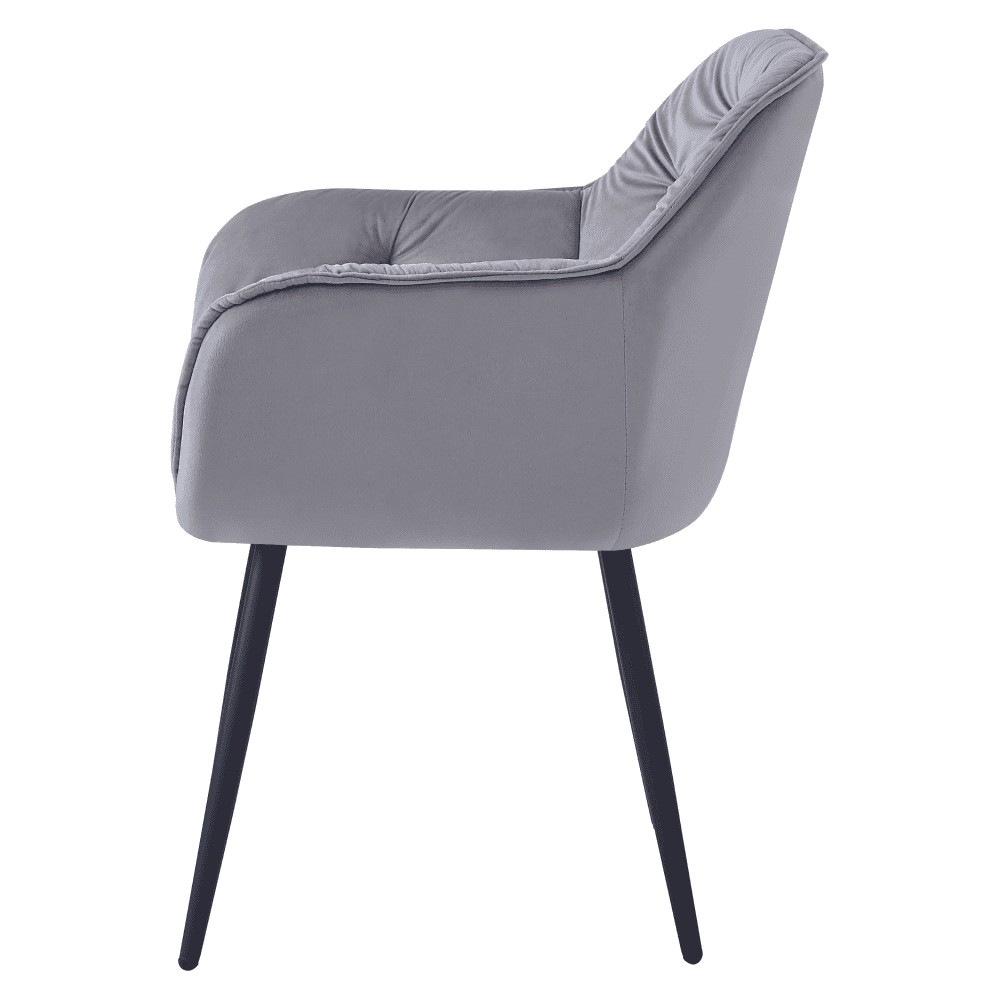 Material: ţesătură Velvet/metal Rezistenţa ţesăturii la frecare conform testului Martindale: 80 000 de cicluri de frecare Culoare: gri deschis/neagră Dimensiuni (lxAxh): 61.5×59,5×80 cm Înălţimea părţii de şezut: 47,5 cm Adâncimea părţii de şezut: 45 cm Lăţimea părţii de şezut: 44 cm Lăţime spătar: 46 cm Înălţime spătar: 32,5 cm Portanţă: 100 kg De design Matlasat Livrat dezasamblat