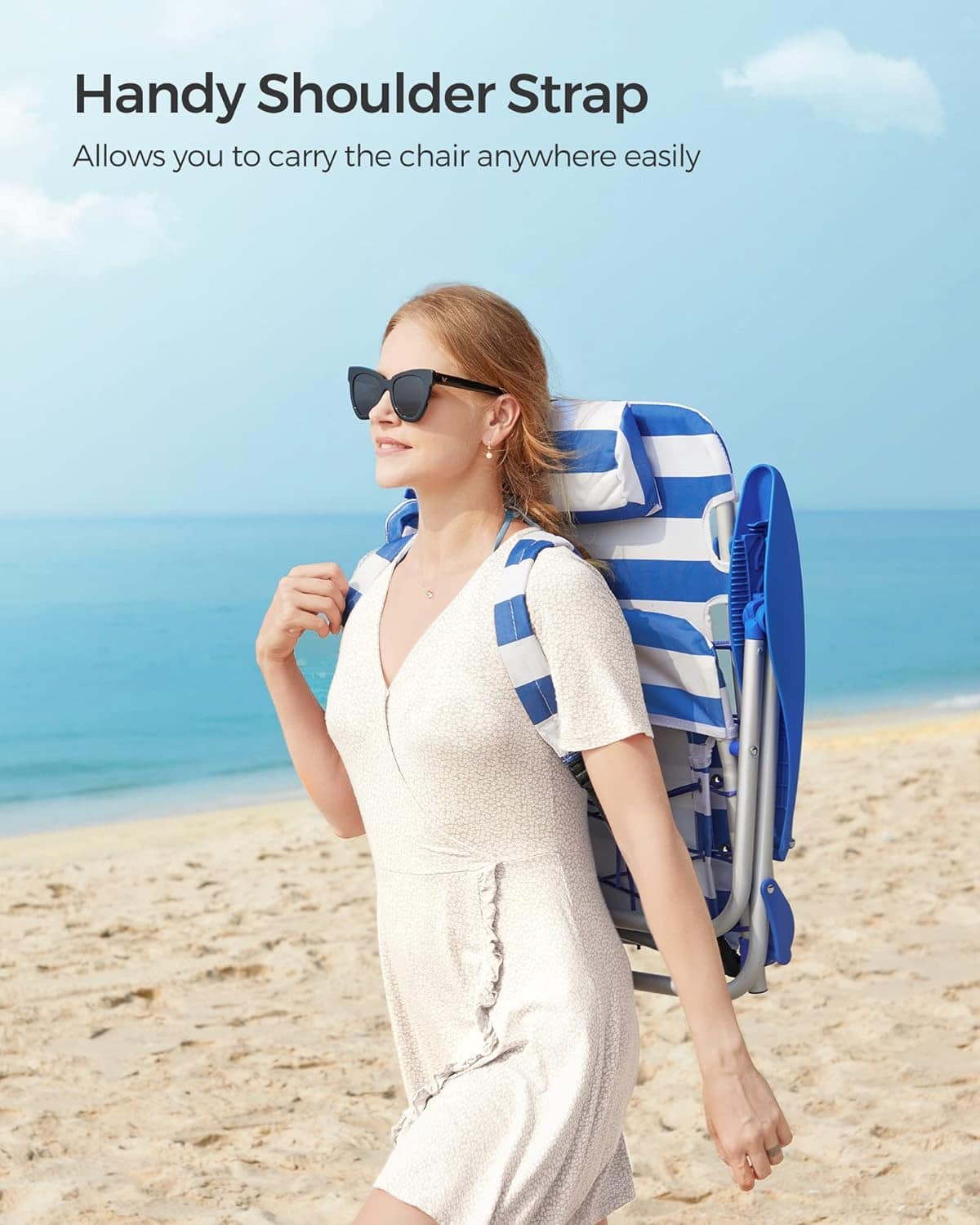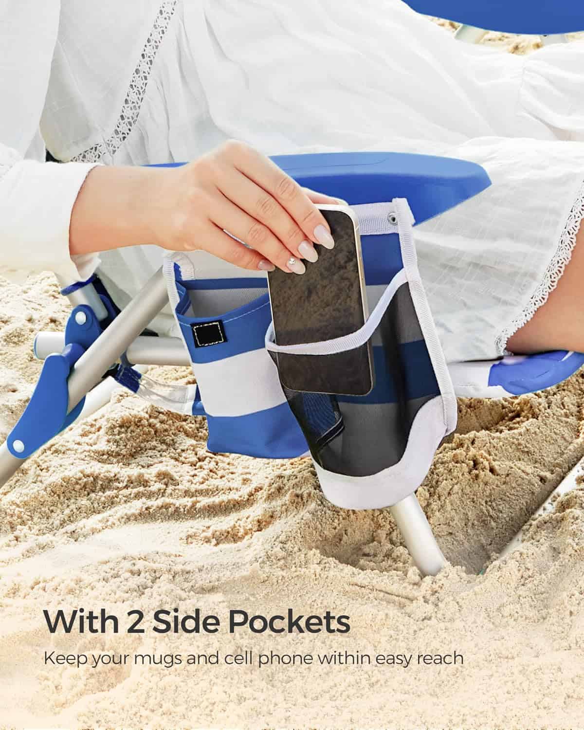 Doar desfasurati scaunul de plaja si apoi este gata de utilizare; puteti pune bauturile in buzunarul din plasa si puneti telefonul si servetelele in buzunarul din tesatura.Nu este nevoie sa limitati utilizarea acestui scaun portabil la plaja, il puteti folosi si in camping pentru a va bucura de apusul soarelui, langa rau pentru a pescui.