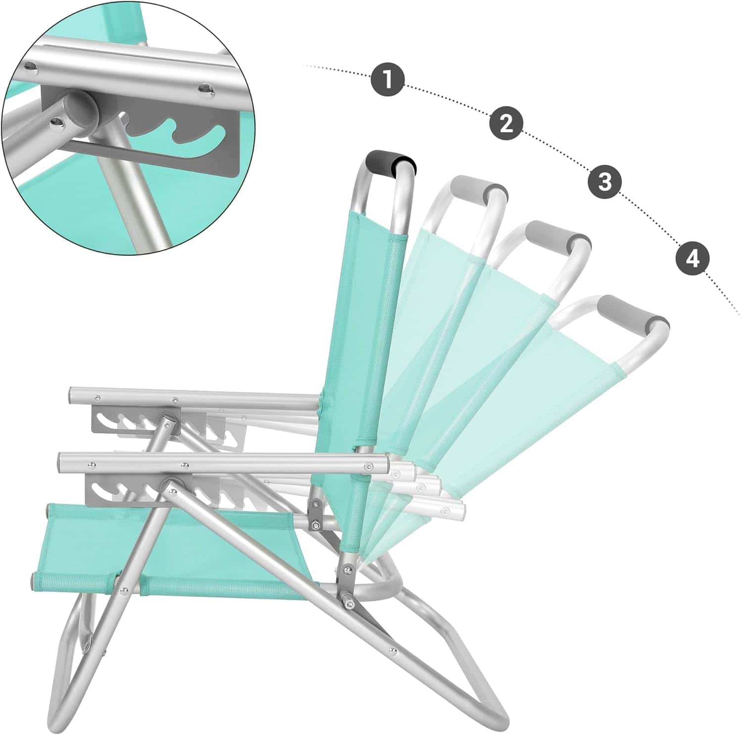 Scaun de plaja portabil cu spatar rabatabil in 4 pozitii, cu cotiere, maxim 150kg, verde Mob360