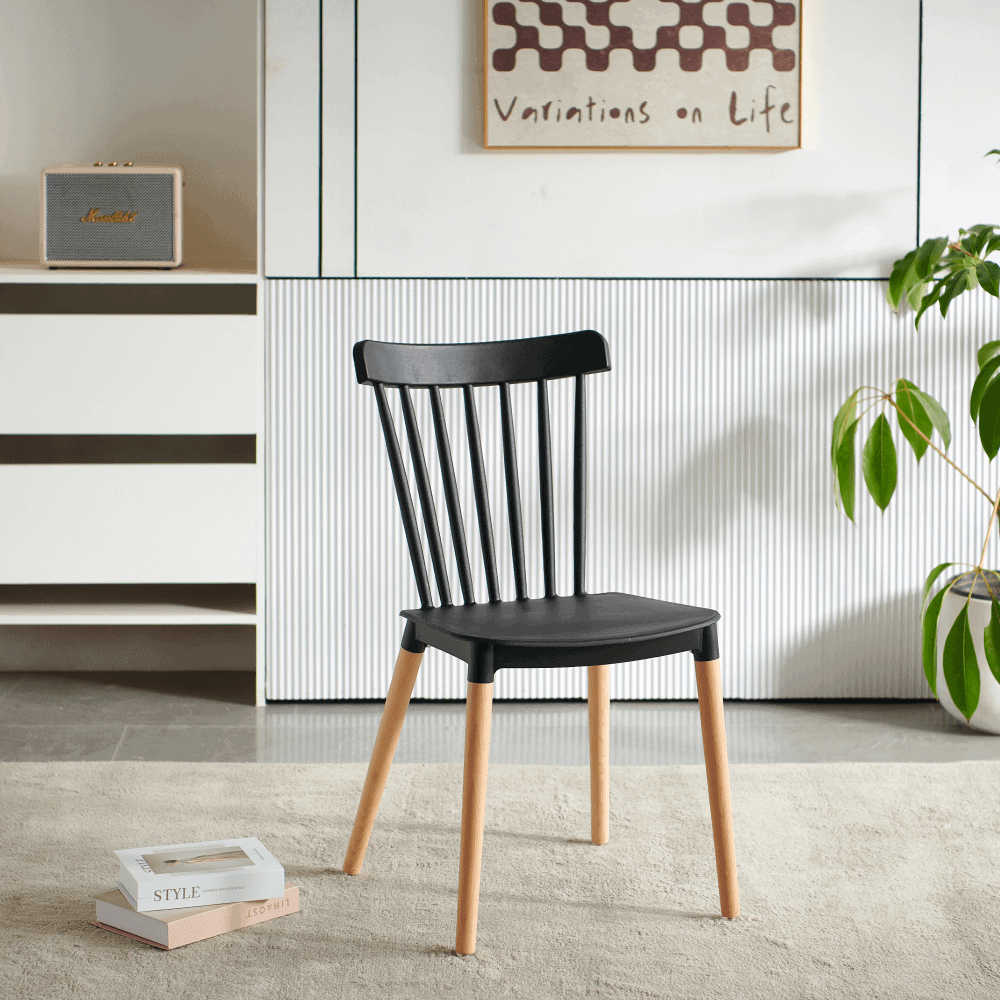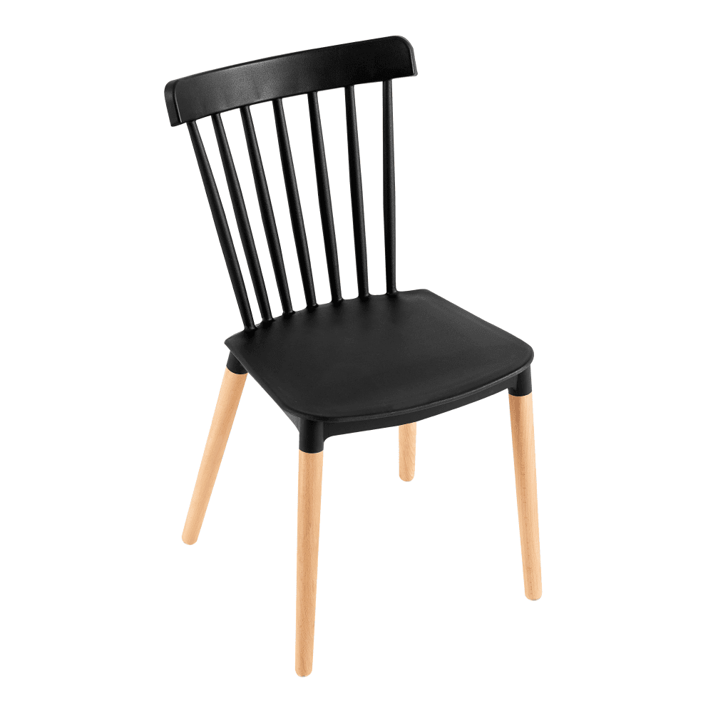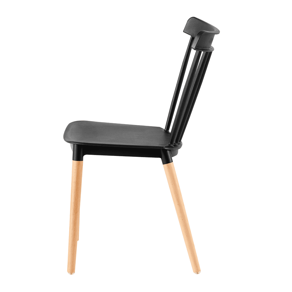 Material: plastic / lemn masiv de fag Culoare: neagră / fag Dimensiuni (LxAxÎ): 54x44x83 cm Înălţime scaun: 45 cm Adâncime scaun: 40 cm Lăţime spătar: 44 cm Înălţime spătar: 42 cm Capacitate de încărcare: 100 kg Livrat dezasamblat