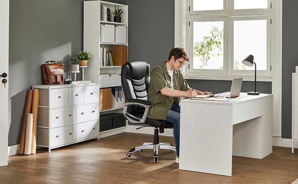 Scaun ergonomic de birou reglabil pe inaltime, piele ecologica, maxim 150 kg, 53x54x115 cm, negru Mob360