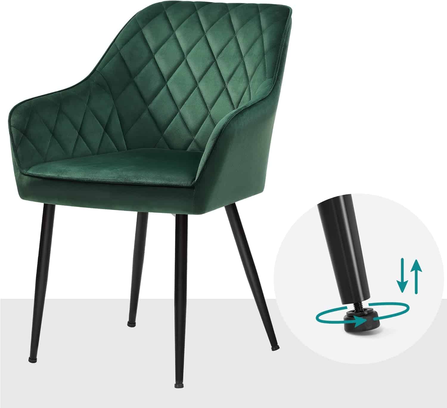 Scaun living tapitat din catifea cu cotiere, sarcina 110 kg, 63x60x85 cm, verde Mob360