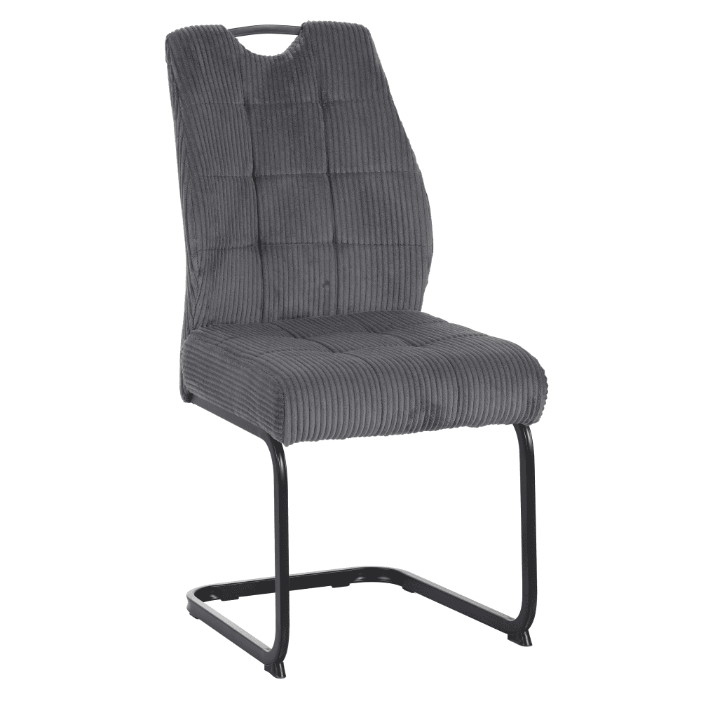 Material: ţesătură Hydra 13/arcuri/metal Rezistenţa ţesăturii la frecare conform testului Martindale: 65 000 de cicluri de frecare Culoare: gri/neagră Dimensiuni (lxAxh): 46×62,5×97 cm Înălţimea părţii de şezut: 49 cm Adâncimea părţii de şezut: 46 cm Lăţimea părţii de şezut: 46 cm Lăţime spătar: 46 cm Înălţime spătar: 48 cm Cu prindere Cu partea de şezut moale Partea de şezut cu arc Modern Matlasat Portanţă: 100 kg Livrat dezasamblat