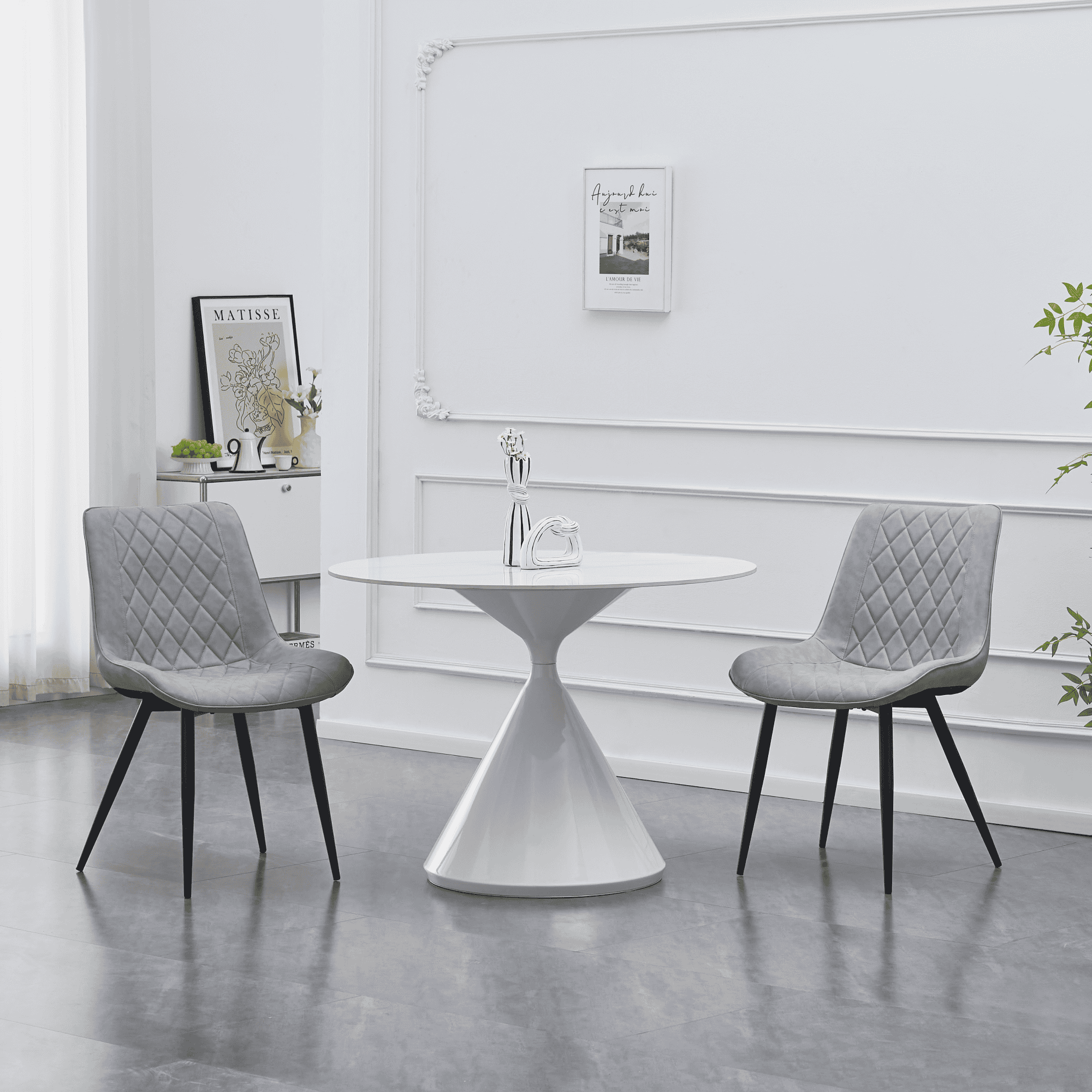 Material: piele ecologică/metal Rezistenţa la frecare a pielii ecologice conform testului Martindale: 80 000 de cicluri de frecare Culoare: gri/neagră Dimensiuni (lxAxh): 53x48x87 cm Înălţime părţii de şezut: 45 cm Adâncimea părţii de şezut: 45 cm Lăţimea şezutului: 53 cm Lăţime spătar: 48 cm Înălţime spătar: 42 cm Portanţă: 100 kg Cadru metalic De design Cusături decorative cu aspect deosebit Livrat dezasamblat