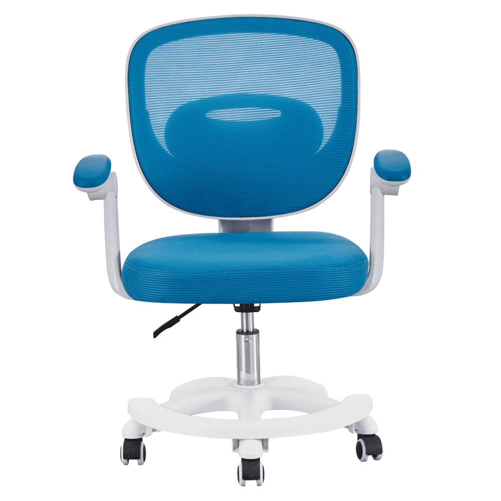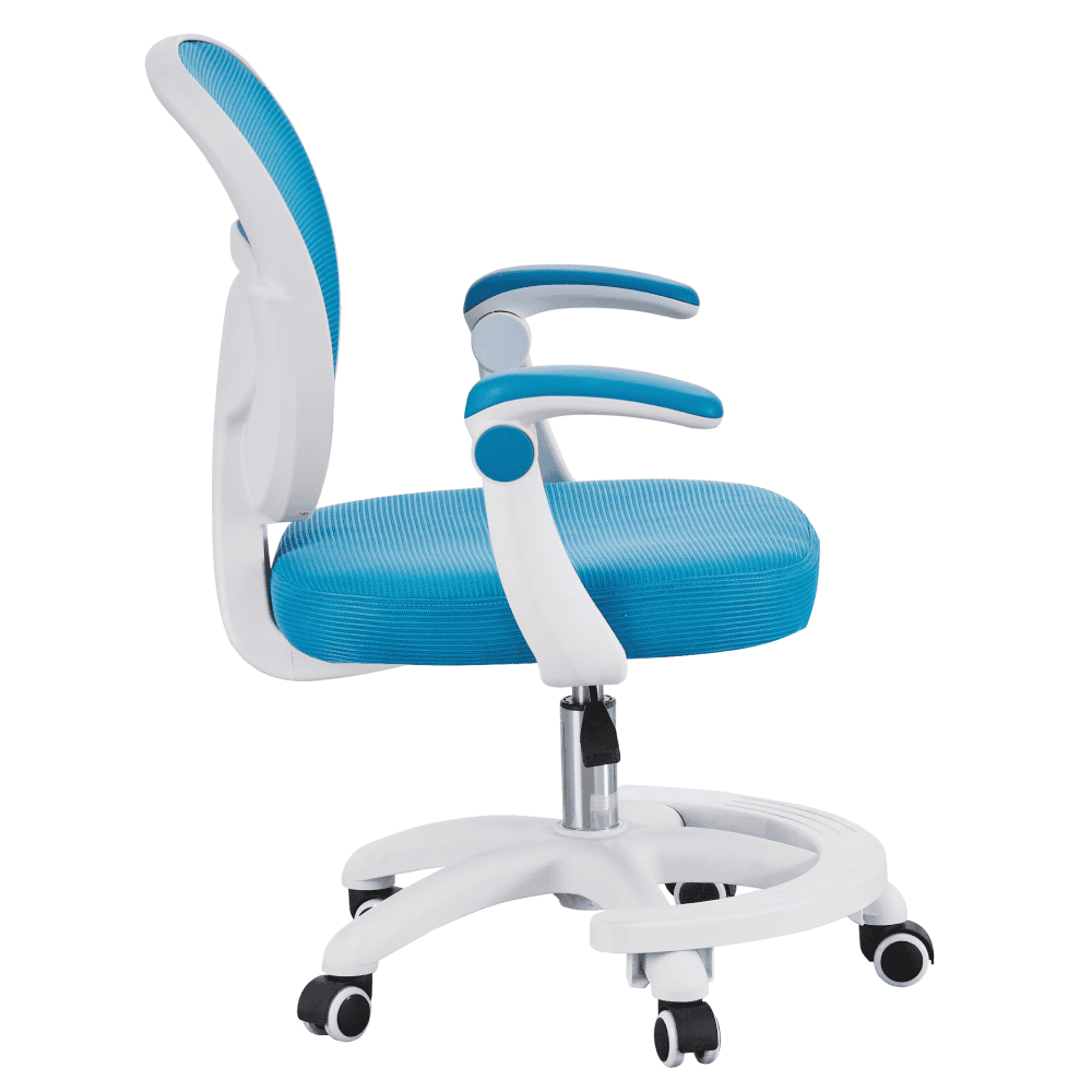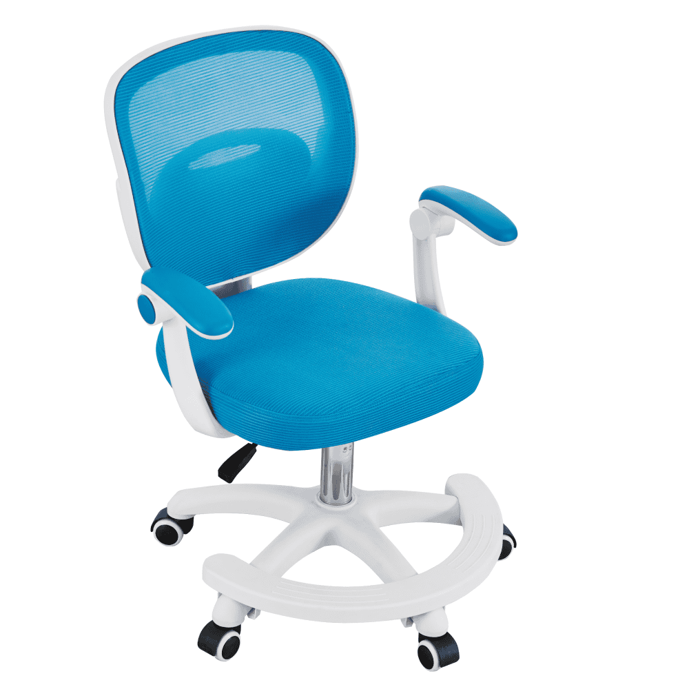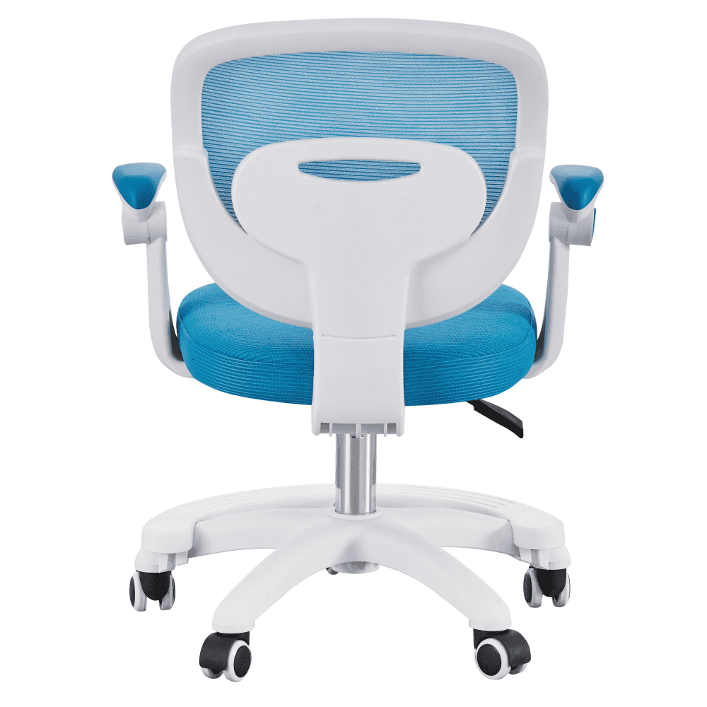 Material: plasă/plastic Rezistenţa plasei conform testului Martindale: 90 000 de cicluri de frecare Culoare: albastră/albă Dimensiuni (lxAxh): 59x50x81-91 cm Înălţimea părţii de şezut: 45-55 cm Adâncime scaun: 42 cm Lăţimea părţii de şezut: 43 cm Înălţime spătar: 40 cm Lăţime spătar: 43 cm Înălţime de la sol la cotieră: 58-68 cm Portanţă: 90 kg Scaun pivotant Înălţime reglabilă a scaunului Cotiere cu funcţia de rabatare Suport pentru picioare Roţi universale Roţi potrivite atât pentru pardoselile dure, cât şi pentru cele moi, Livrat dezasamblat