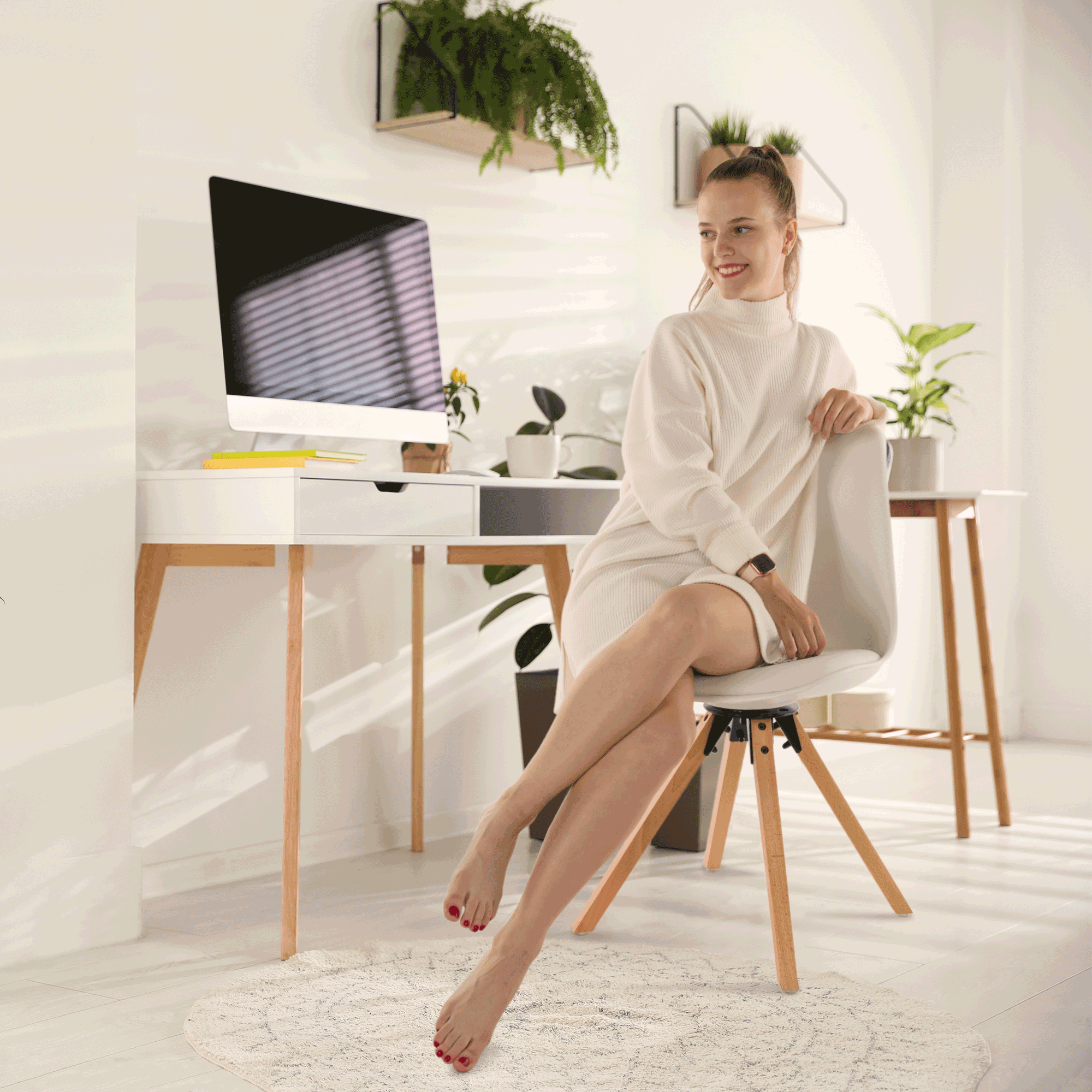 Scaun pivotant elegant, alb, ETOSA
