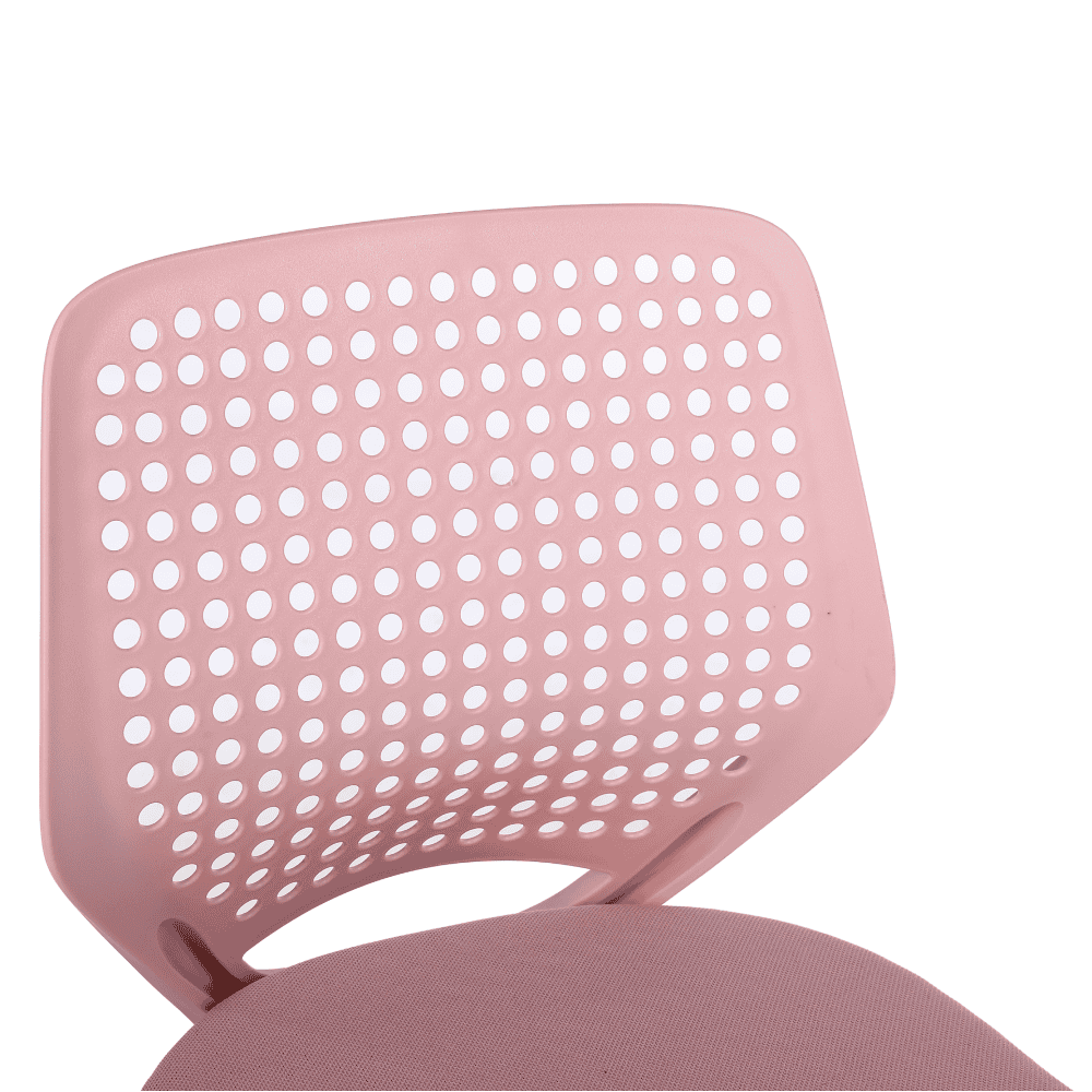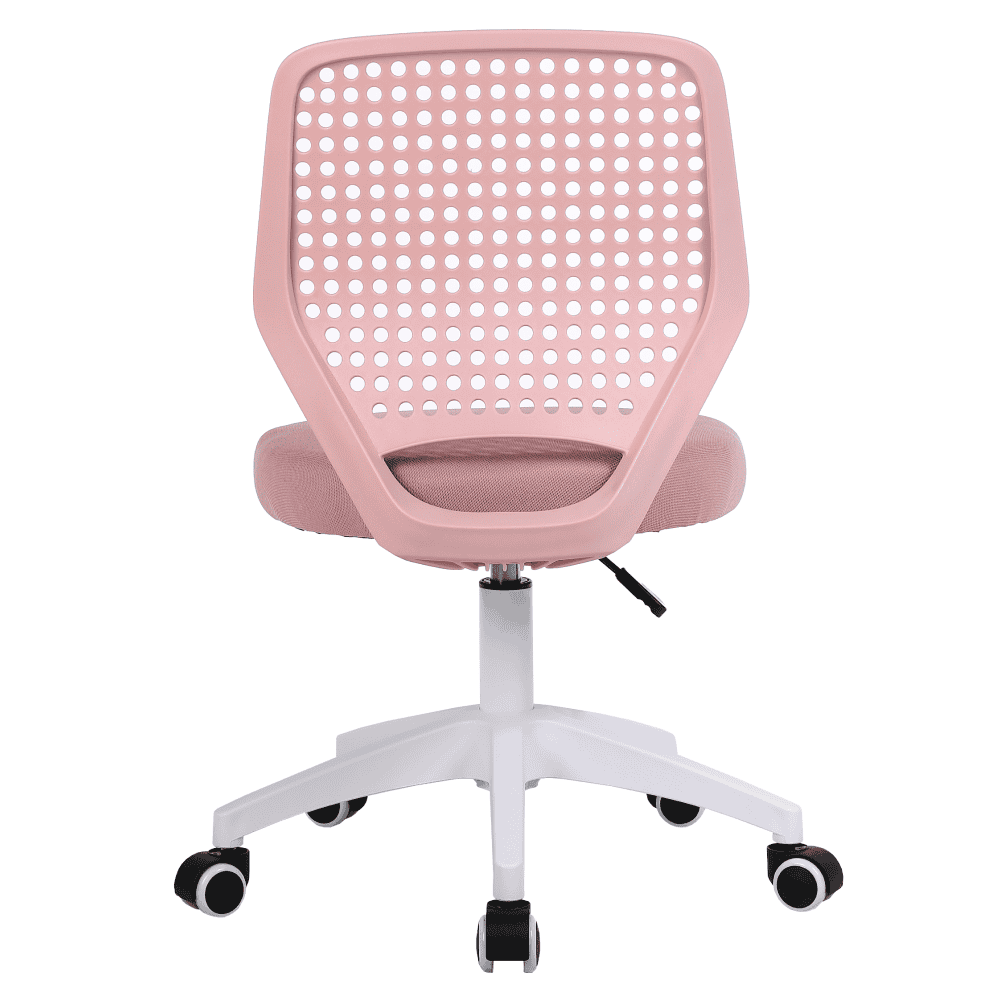 Material: plasă /plastic Rezistenţa ţesăturii la frecare conform testului Martindale: 15 000 de cicluri de frecare Culoare: roz/albă Dimensiuni (lxAxh): Înălţimea părţii de şezut: 46x50x79/89 cm 41-51 cm Lăţimea părţii de şezut: 46 cm Adâncimea părţii de şezut: 43 cm Înălţime spătar: 43 cm Lăţime spătar: 35 cm Portanţă: 100 cm Pivotant Roţi universale pivotante Potrivite pentru pardoseli dure şi moi Bază cu cinci braţe Livrat dezasamblat