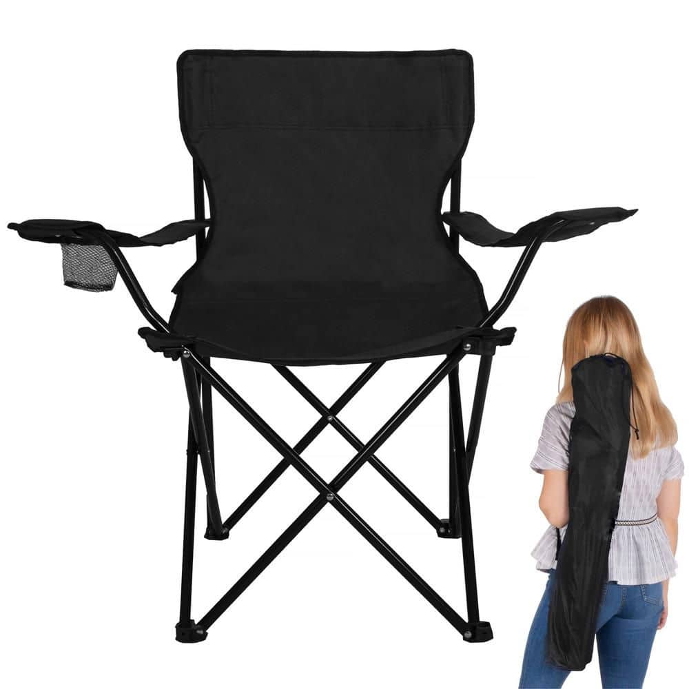 Scaun pliabil camping sau pescuit , cu suport pahar, negru Mob360