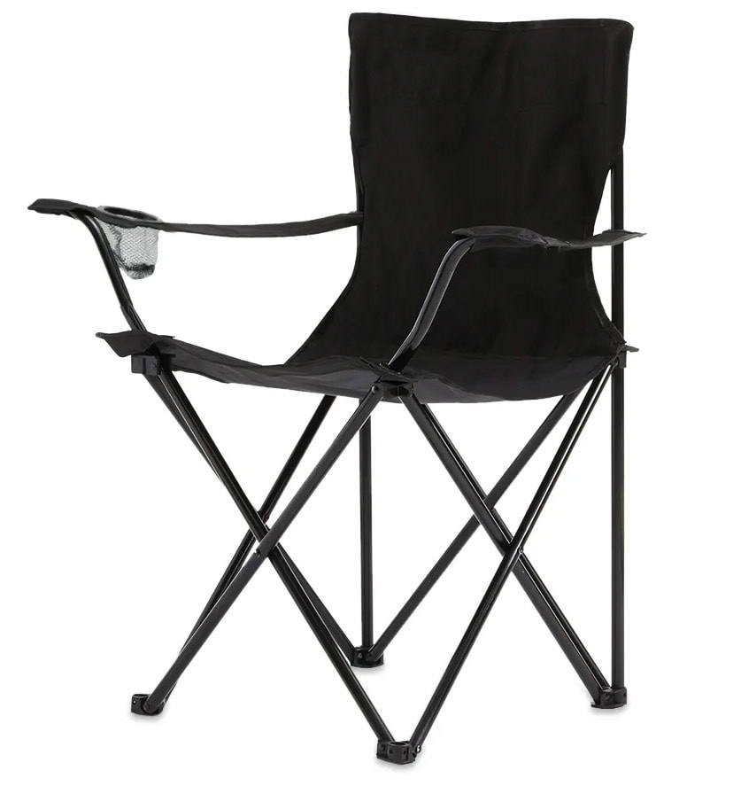 Scaun pliabil camping sau pescuit , suport pahar, negru Mob360