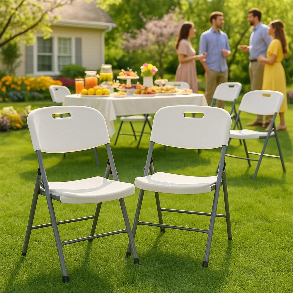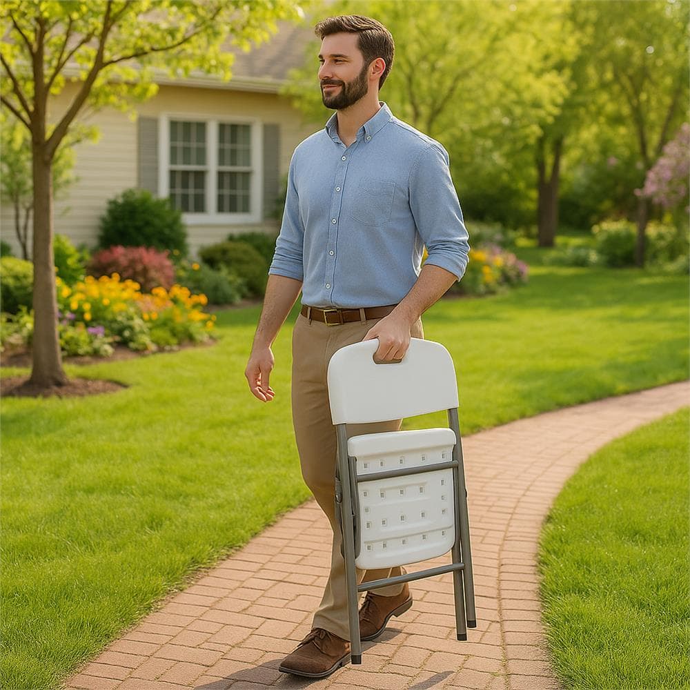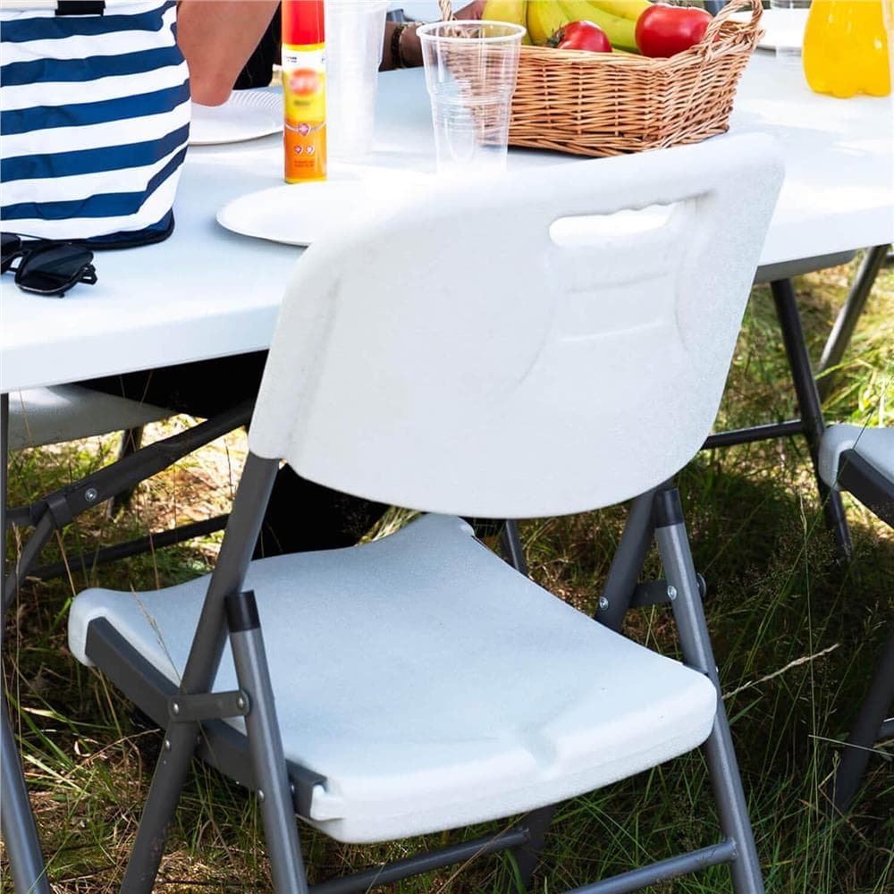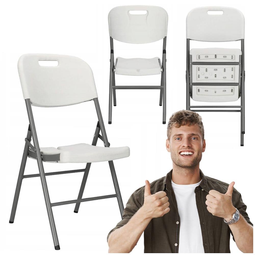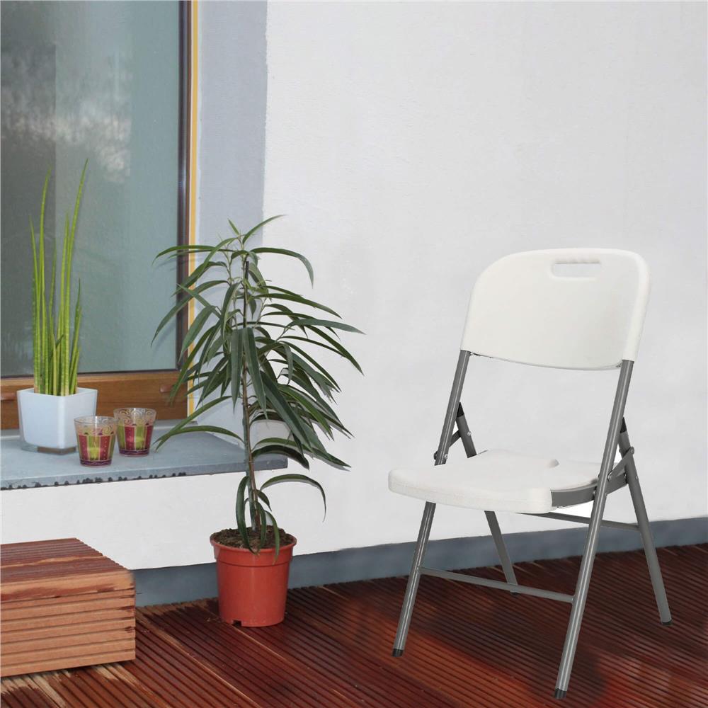 Scaun pliabil HDPE cu cadru metalic, pentru catering sau gradina, 46x53x86 cm, 150 kg, alb Mob360