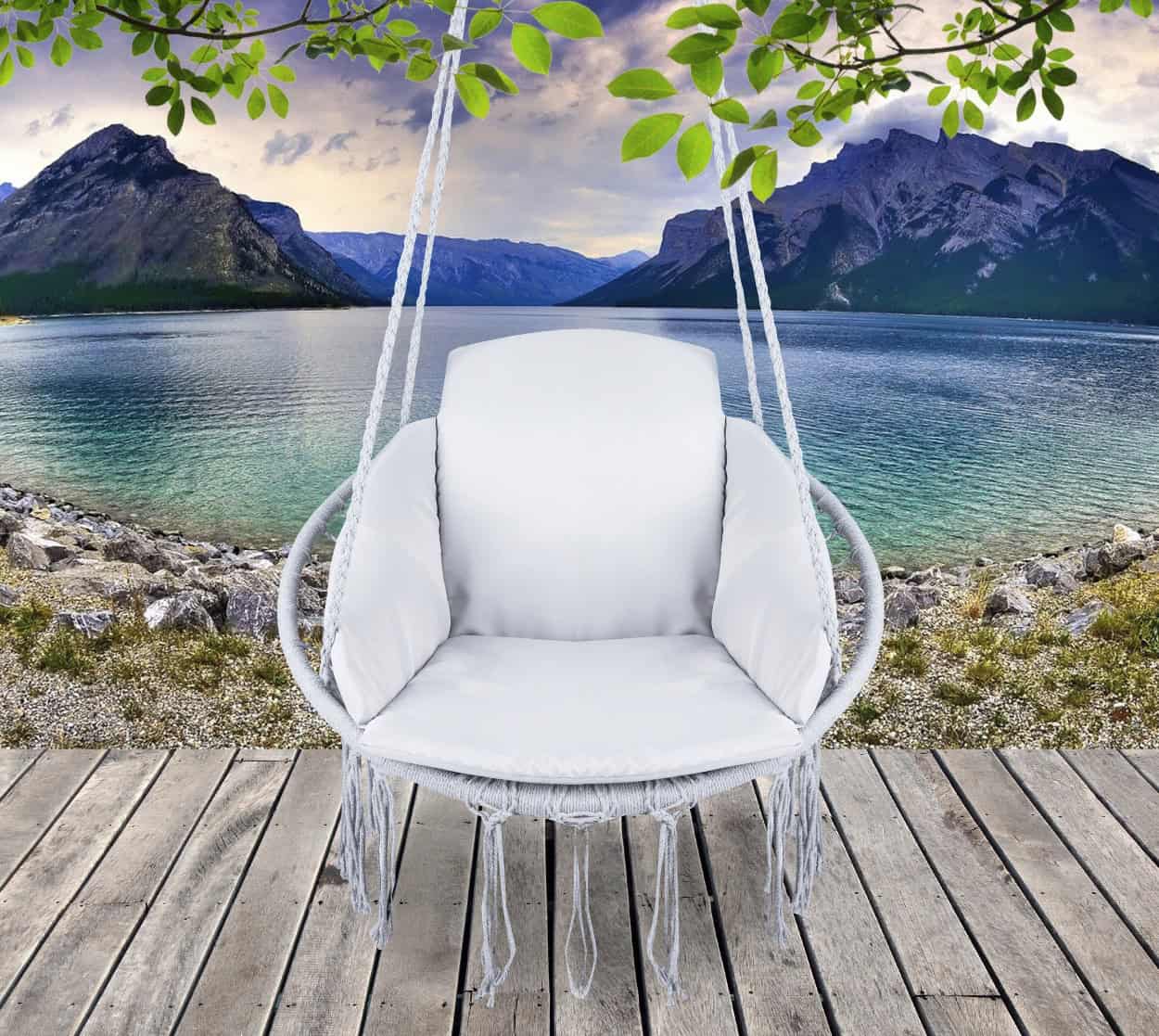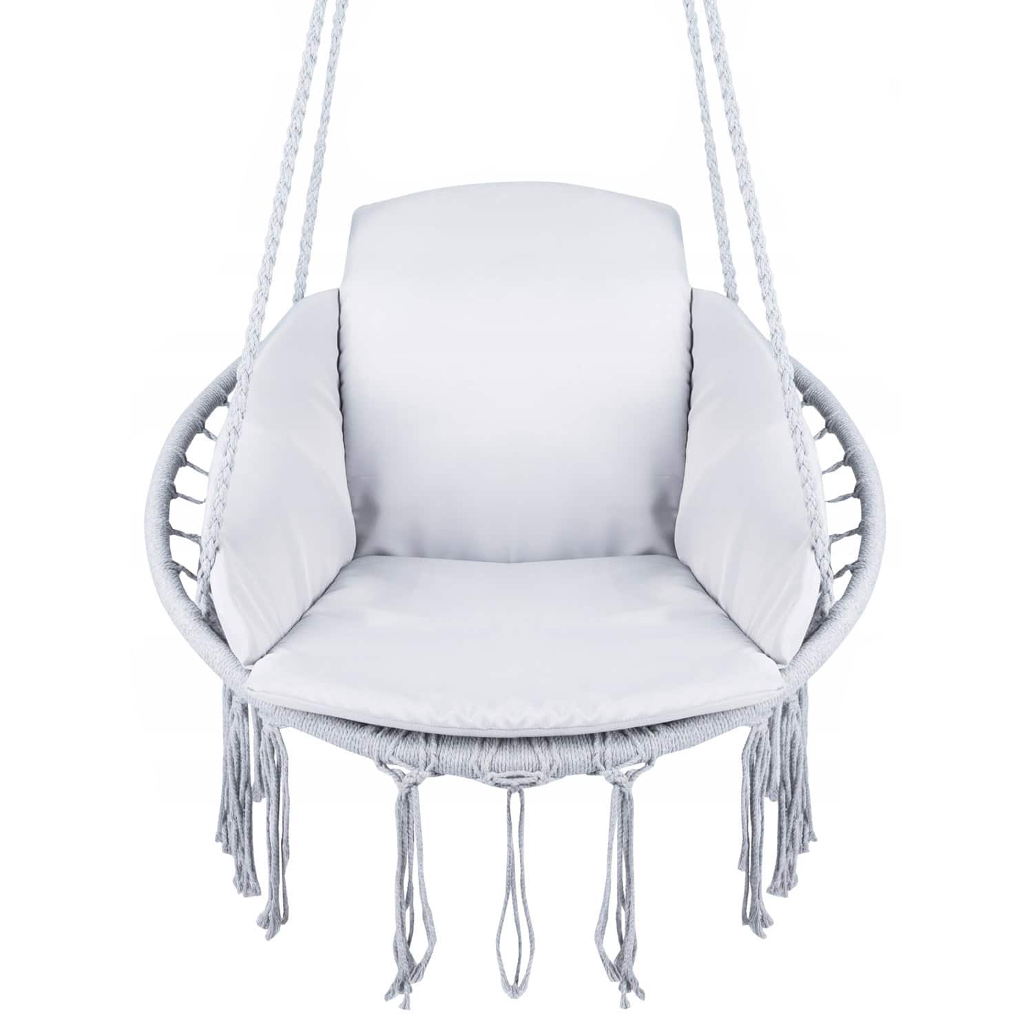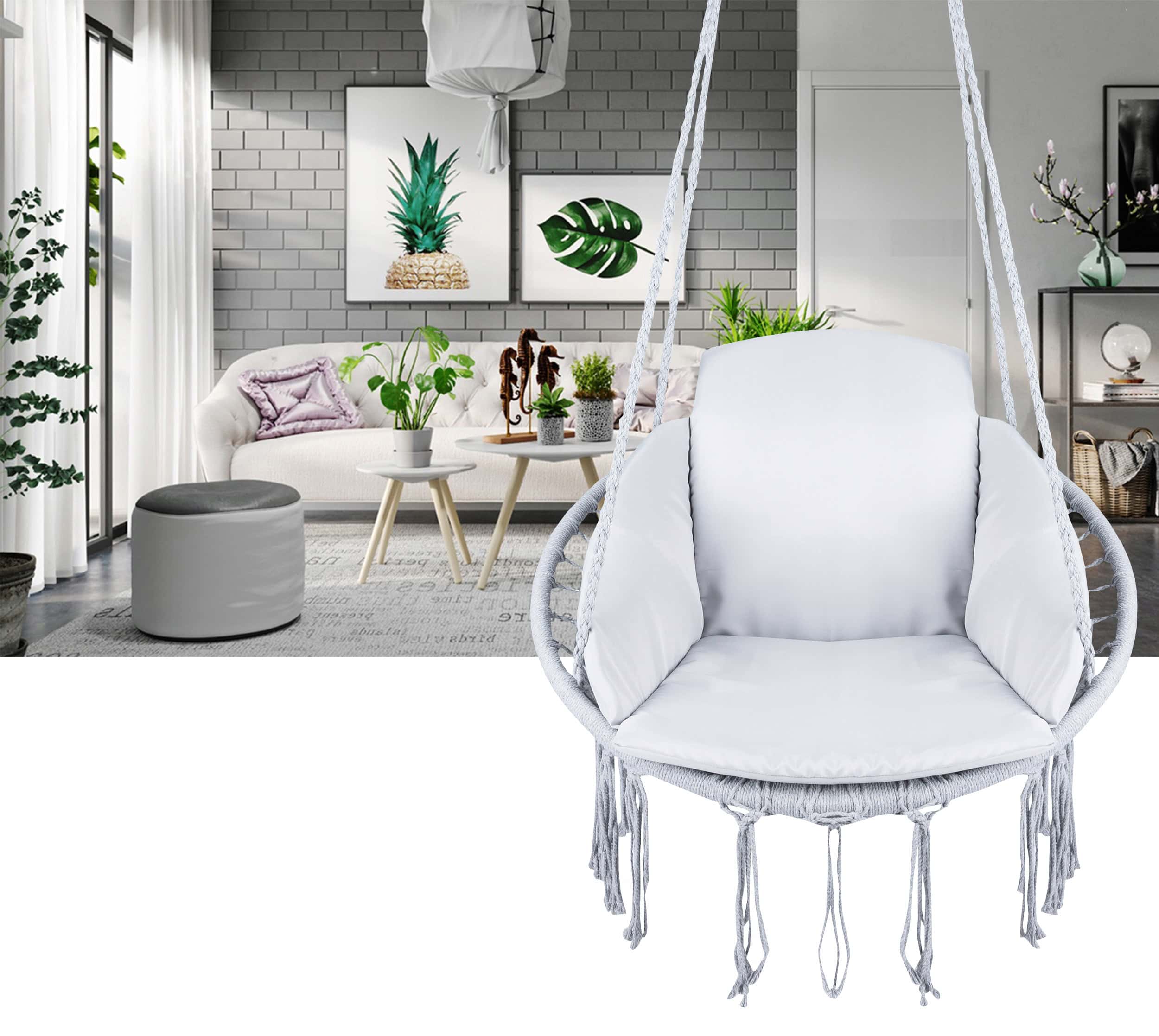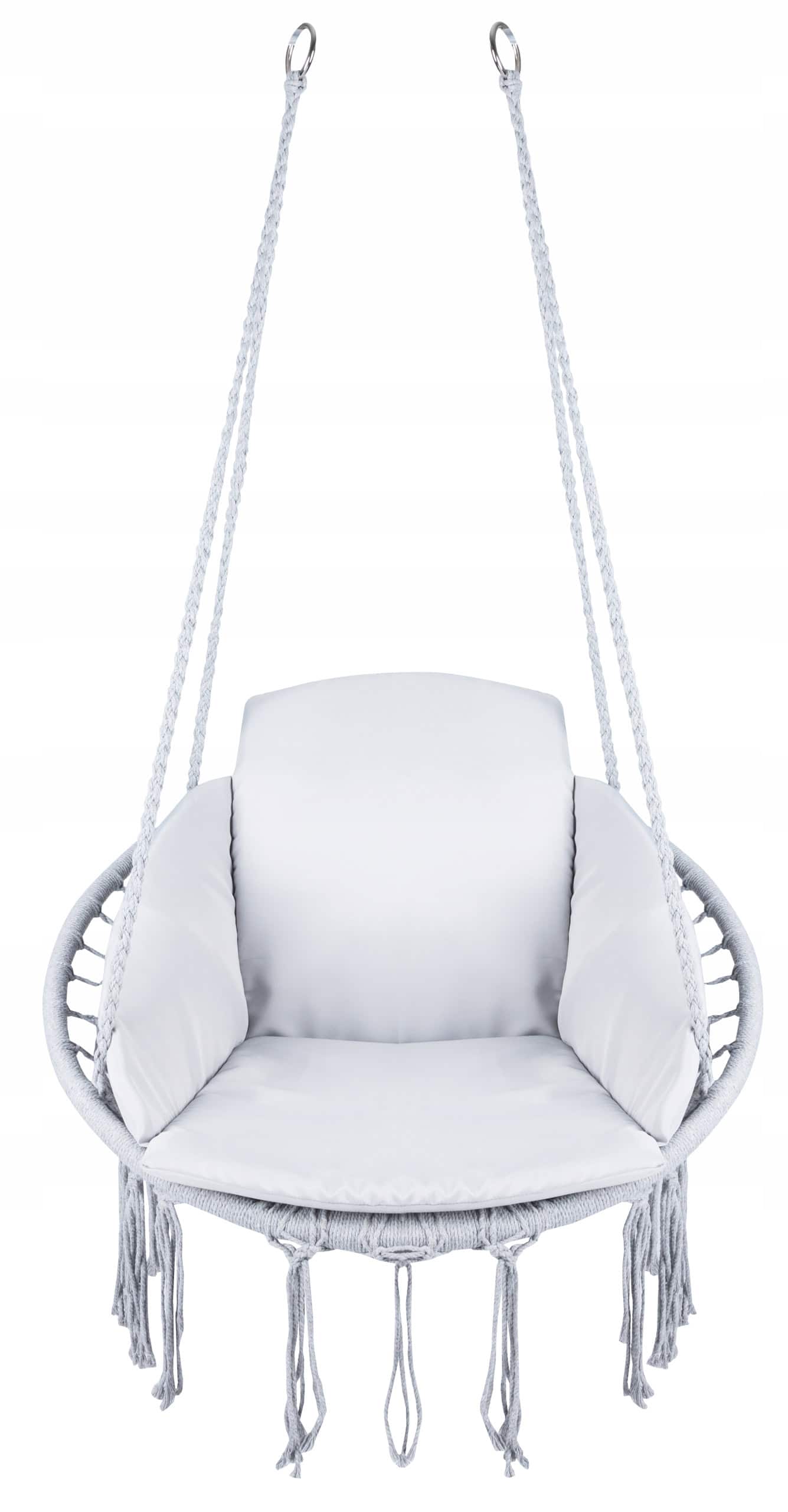 - Fotoliul suspendat cu perna de la este un hit sigur al sezonului. Se potriveste in majoritatea amenajarilor din gradina, de pe terasa, sau din interiorul casei – in camera de zi sau in camera copiilor. Le va oferi copiilor o joaca sigura si plina de distractie, iar adultilor o relaxare fericita. Ciucurii la moda in stil boho, culoarea frumoasa si o impletitura puternica de franghie confera leaganului suspendat un aspect uimitor. Franghiile impletite estetic si cercurile groase legate cu ele ofera rezistenta si confort. Perna moale, de marime potrivita, completeaza perfect ansamblul. Optati pentru un design interesant si faceti relaxarea si mai placuta. Agatati leaganul cuib de barza oriunde doriti. Este o decoratiune geniala pentru interioare – originala, eleganta si in acelasi timp usoara si practica. Va conferi interiorului dvs. un aspect confortabil si neobisnuit. Este o solutie perfecta pentru camerele copiilor, unde mamele pot sa se legene si sa ii hraneasca pe cei mici. Pentru a fi mai usor de agatat, corzile pe care este agatat leaganul sunt finisate cu roti metalice. Puteti agata cu usurinta scaunul in doua moduri. Modul in care doriti sa utilizati leaganul depinde de dumneavoastra!Perna pentru cuibul de barza, a fost realizata cu cea mai mare grija. Culoarea cea mai la moda si tesatura distincta ii adauga farmec si atractivitate. Va va permite sa va odihniti mai confortabil si mai comod. Avantajul sau incontestabil este tesatura din care este confectionata husa pernei – groasa, cu o tesatura distincta. Bumbacul, o fibra naturala care este non-alergenica si confera un aspect rafinat, este un mare avantaj al husei. Este completarea perfecta a leaganului.Inclus: perna pentru scaun