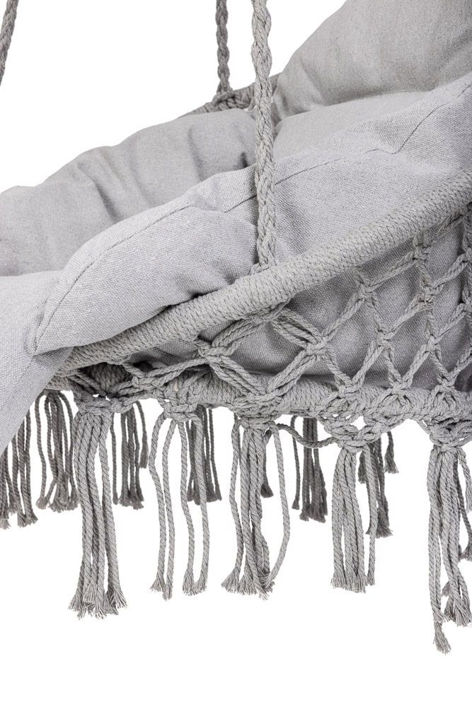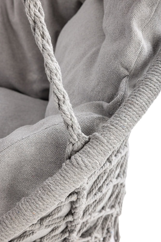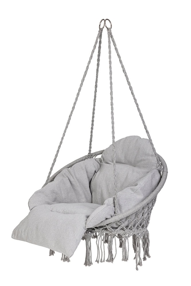 - Un fotoliu suspendat elegant si confortabil, perfect pentru relaxare in gradina, pe terasa sau chiar in interiorul locuintei. Construit din materiale durabile si echipat cu o perna XXL moale, acest leagan ofera un plus de confort si stil. Se integreaza armonios in decorul natural sau interior, datorita nuantei neutre de gri. Caracteristici principale: