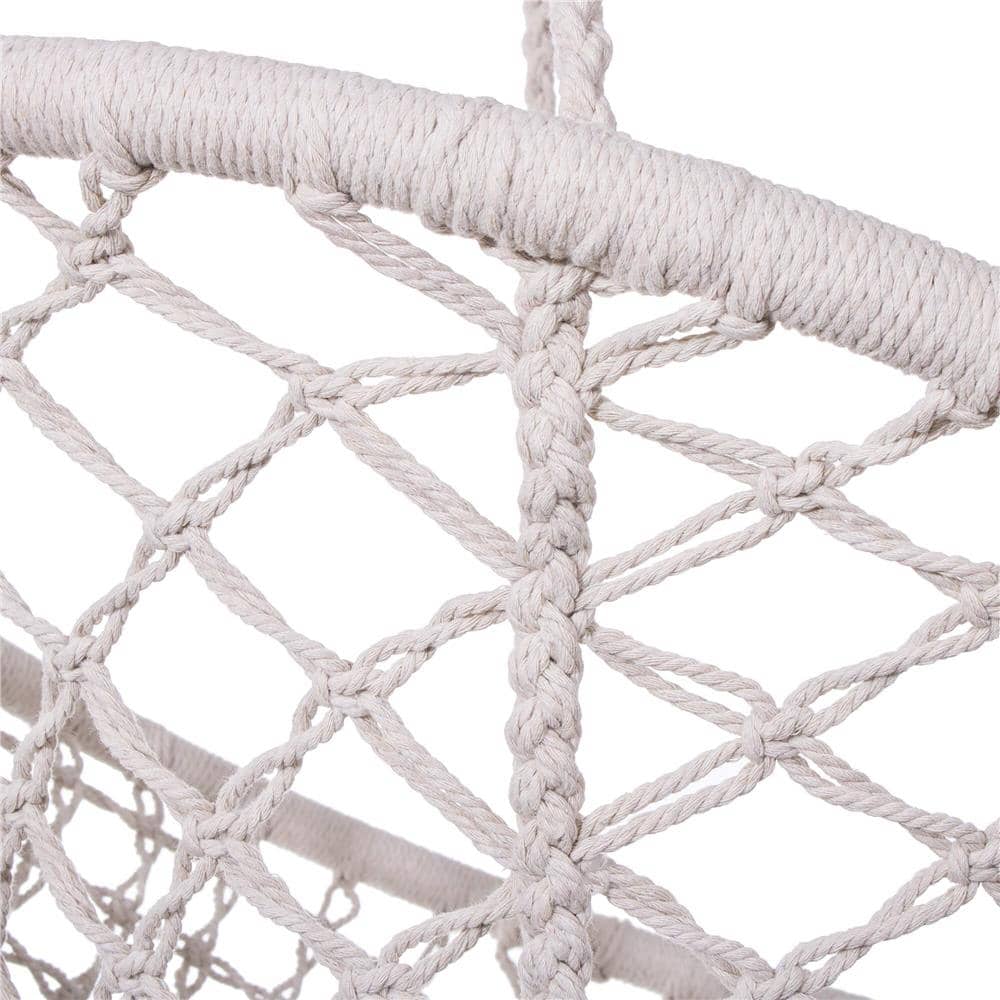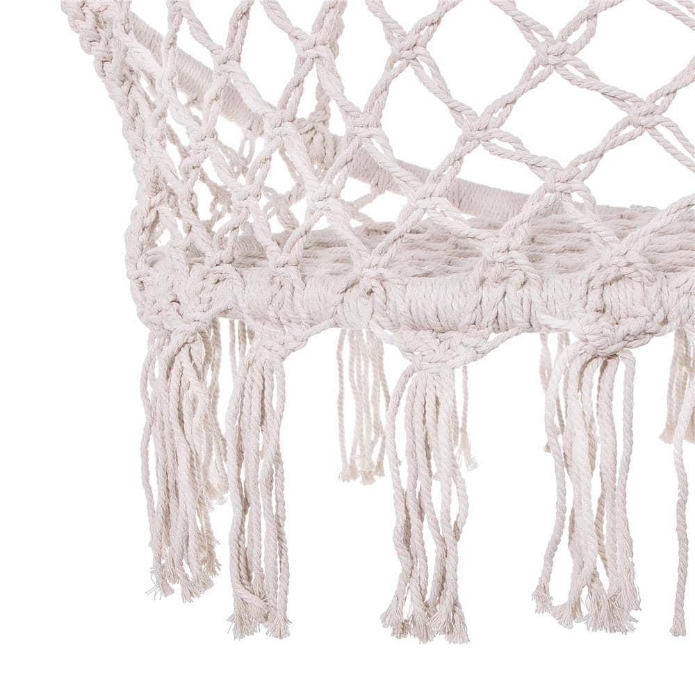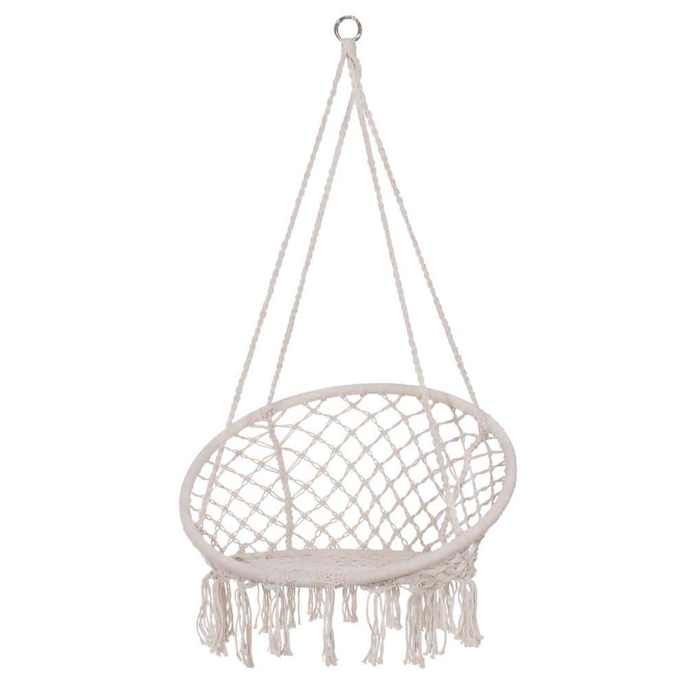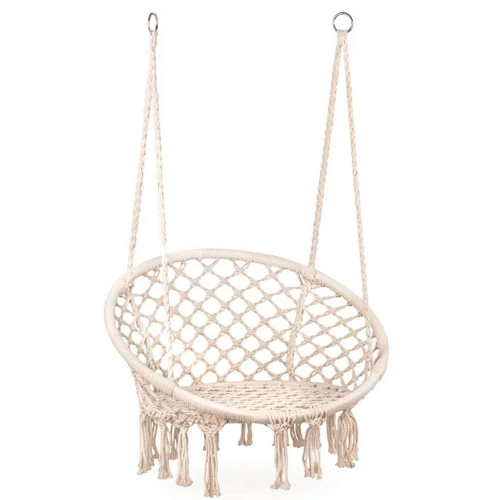 Scaun rotund tip leagan suspendat pentru casa sau gradina, cu franjuri, 150kg, crem Mob360