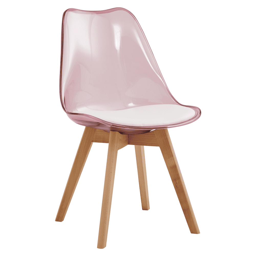 Scaun, roz transparent, acrilic/piele ecologică/fag, BALI 2 NEW