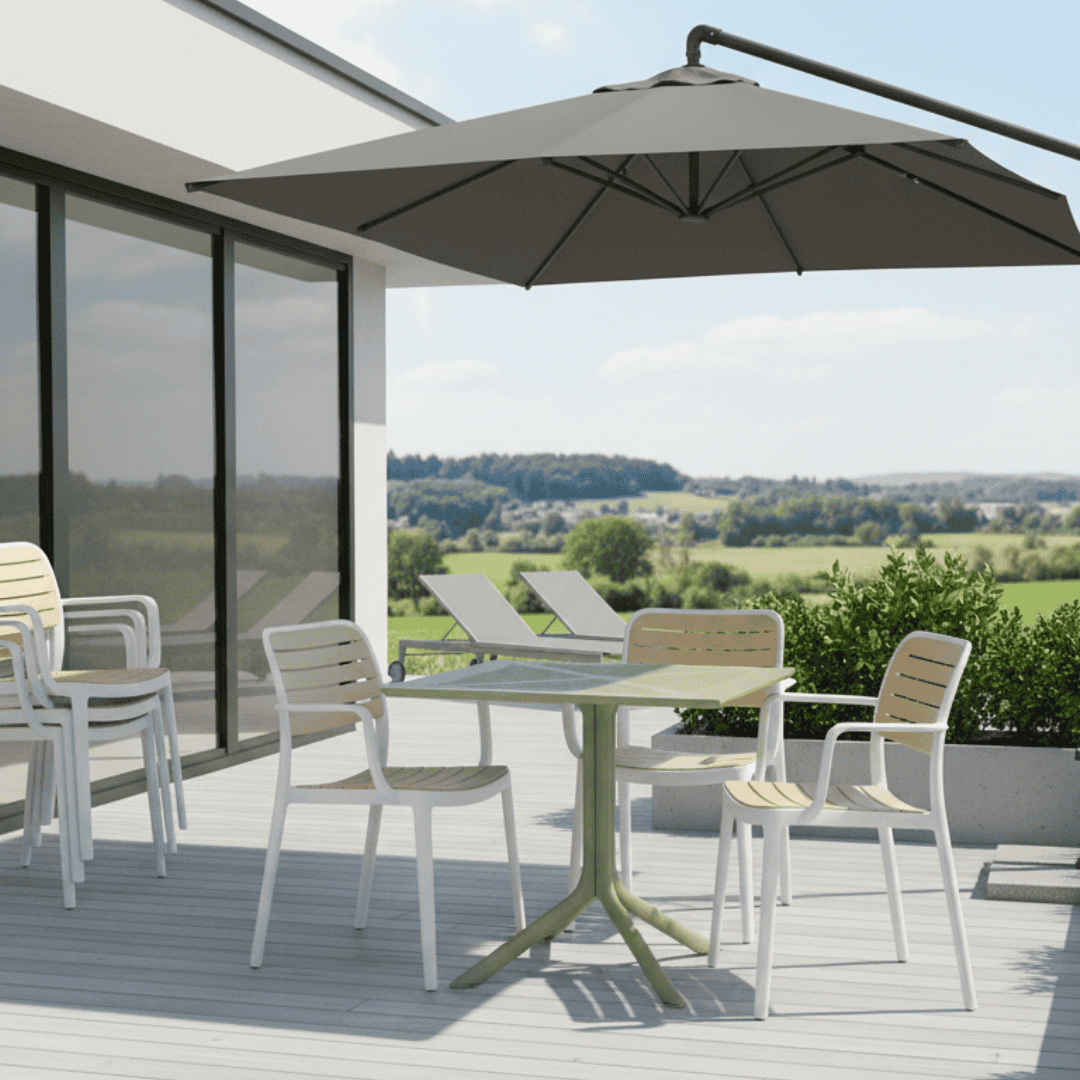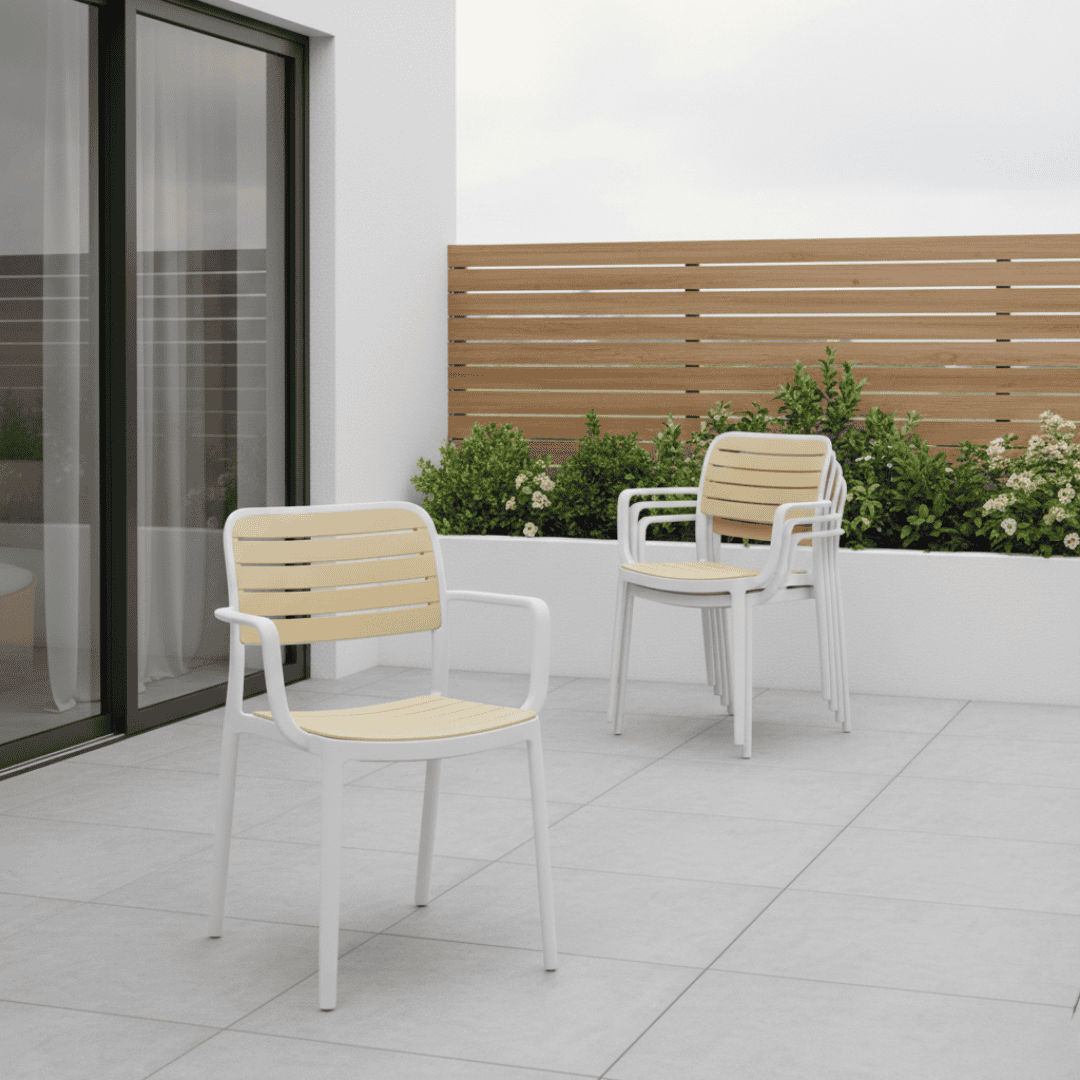 Lăţime spate: 43 cm Portanţă: 100 kg Greutate: 5,3 kg Stivuibil Potrivit pentru interior şi exterior Livrat asamblat