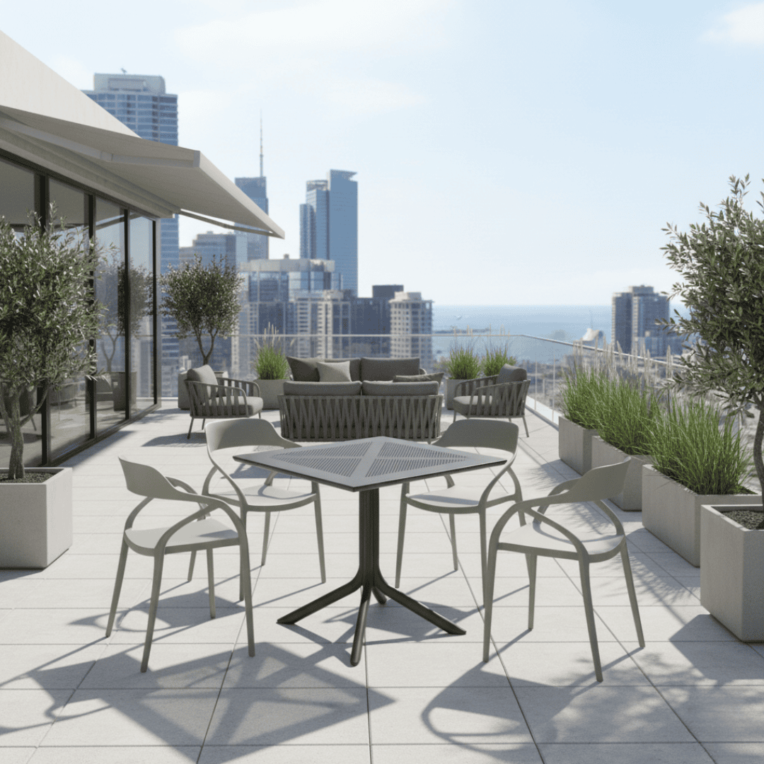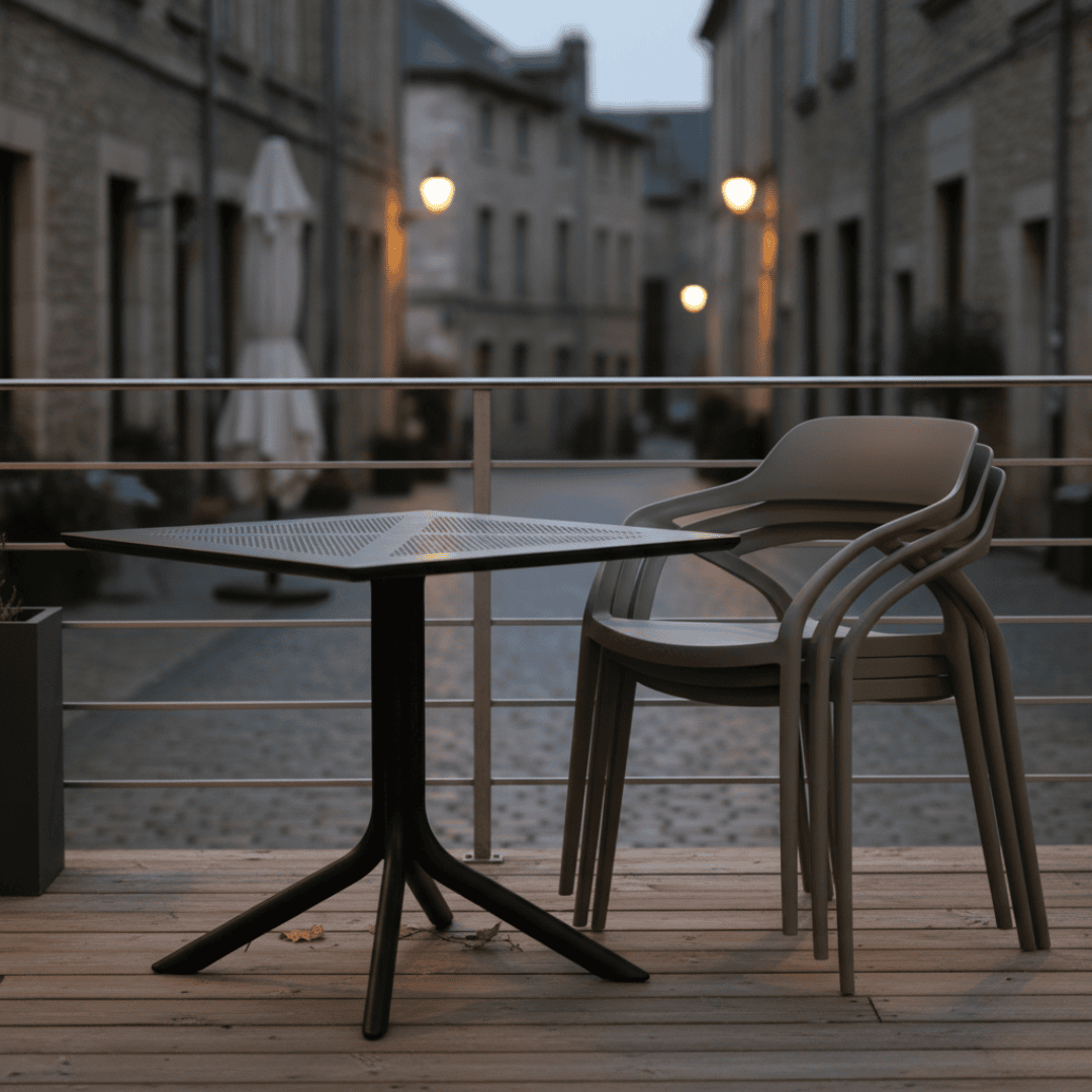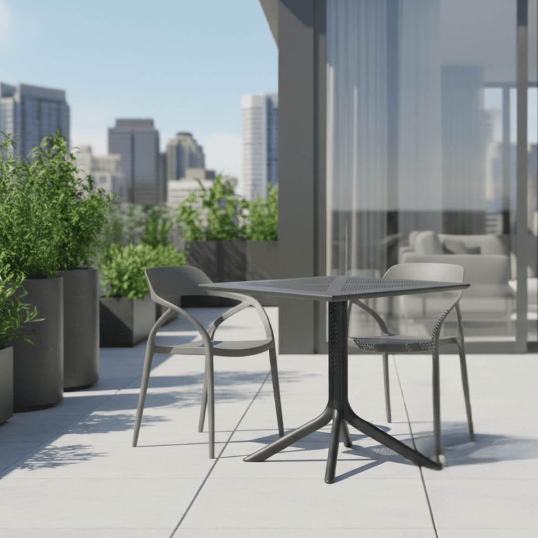 Material: plastic Culoare: gri Dimensiuni (lxAxh): 57x50x80 cm Înălţimea părţii de şezut: 45 cm Adâncimea părţii de şezut: 45 cm Lăţimea părţii de şezut: 40 cm Înălţime spate: 36 cm Lăţime spate: 43 cm Portanţă: 100 kg Greutate: 3,9 kg Scaun de sufragerie Scaun de grădină Stivuibil Potrivit pentru interior şi exterior Livrat asamblat