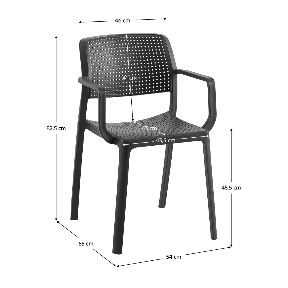 Lăţime spătar: 46 cm Capacitate de încărcare: 100 kg Greutate: 4,74 kg Stivuibil Potrivit pentru interior şi exterior Livrat asamblat