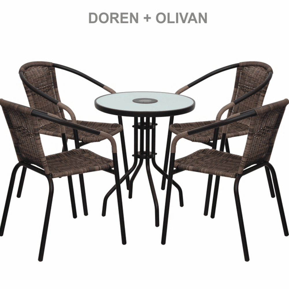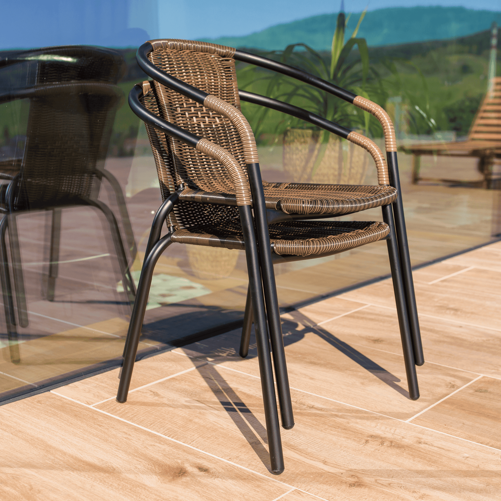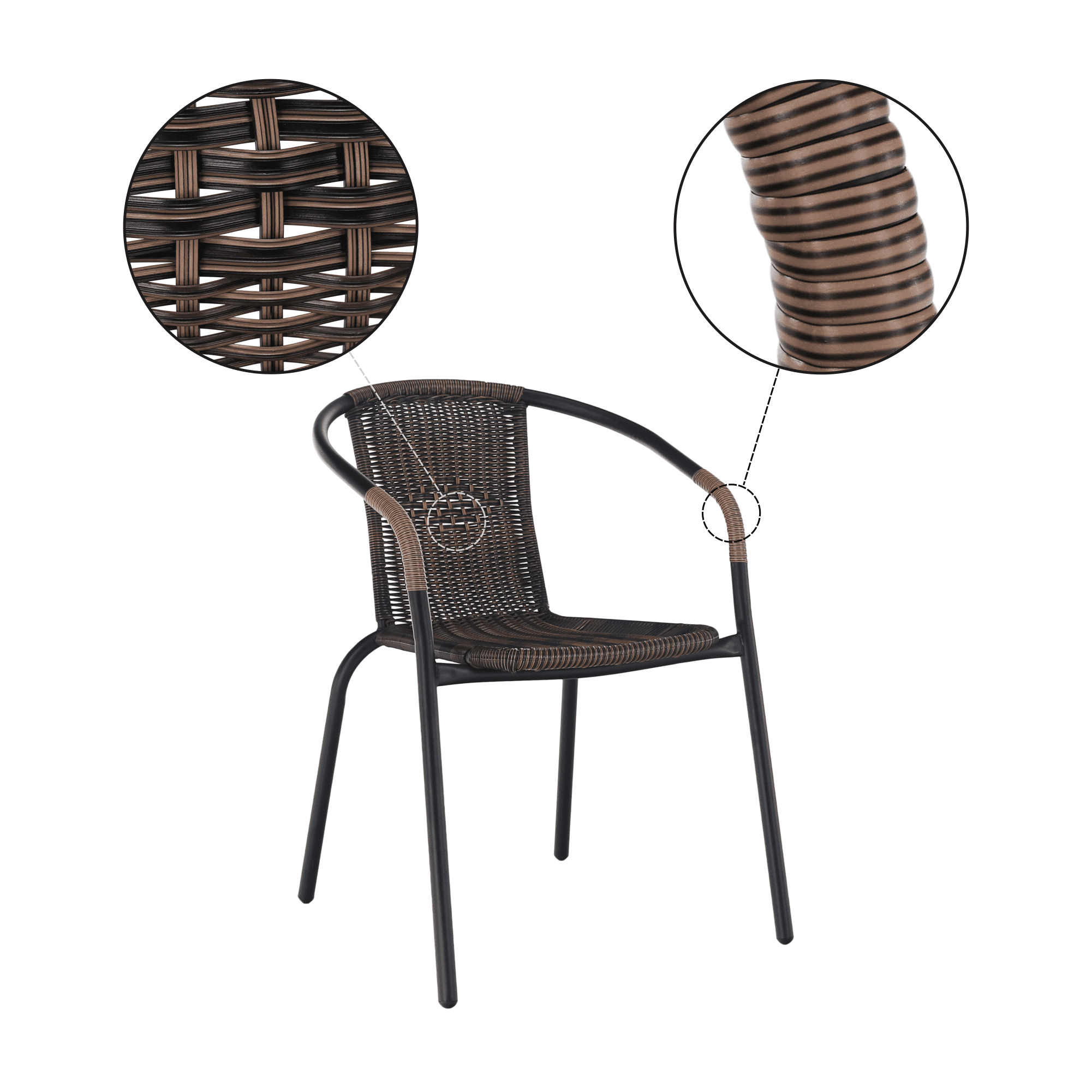 Scaun stivuibil, răchită sintetică maro/metal negru, DOREN