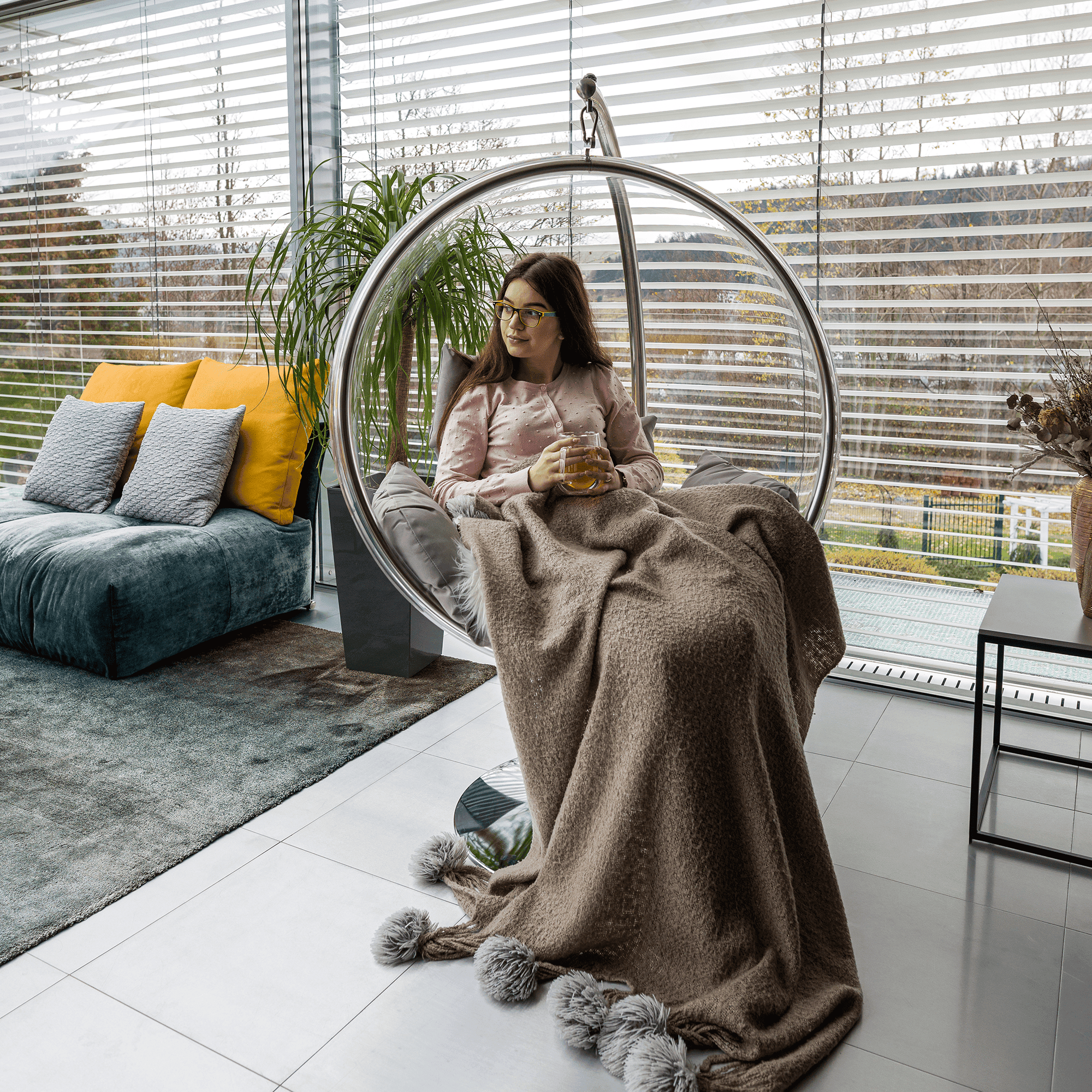 Scaun suspendat cu suport BUBBLE NEW TIP 3 Material: oţel inoxidabil/ acril/ ţesătură Rezistenţa la abraziune a ţesăturii conform testului Martindale: 95.000 abraziuni Culoare cadru: argintiu Culoare acrilic: transparent Culoarea pernei: gri Dimensiuni fotoliu (LxAxÎ): 106x68x155 cm Diametru interior: 97 cm Adâncimea scaunului: 60 cm Înălţime şezut: 74 cm Greutate maximă suportată: până la 100 kg Potrivit pentru interior şi exterior Vine cu o pernă Pernele sunt impermeabile Cu fermoar pe partea inferioară a pernelor Perna mică nu are fermoar Scaunul vine cu suport Furnizat nemontat
