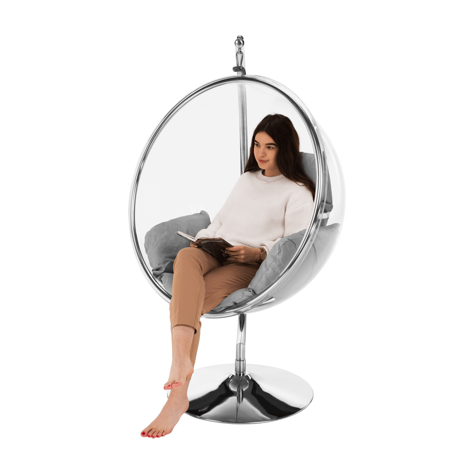 Scaun suspendat cu suport, transparent/ argintiu/ gri, BUBBLE NEW TIP 3