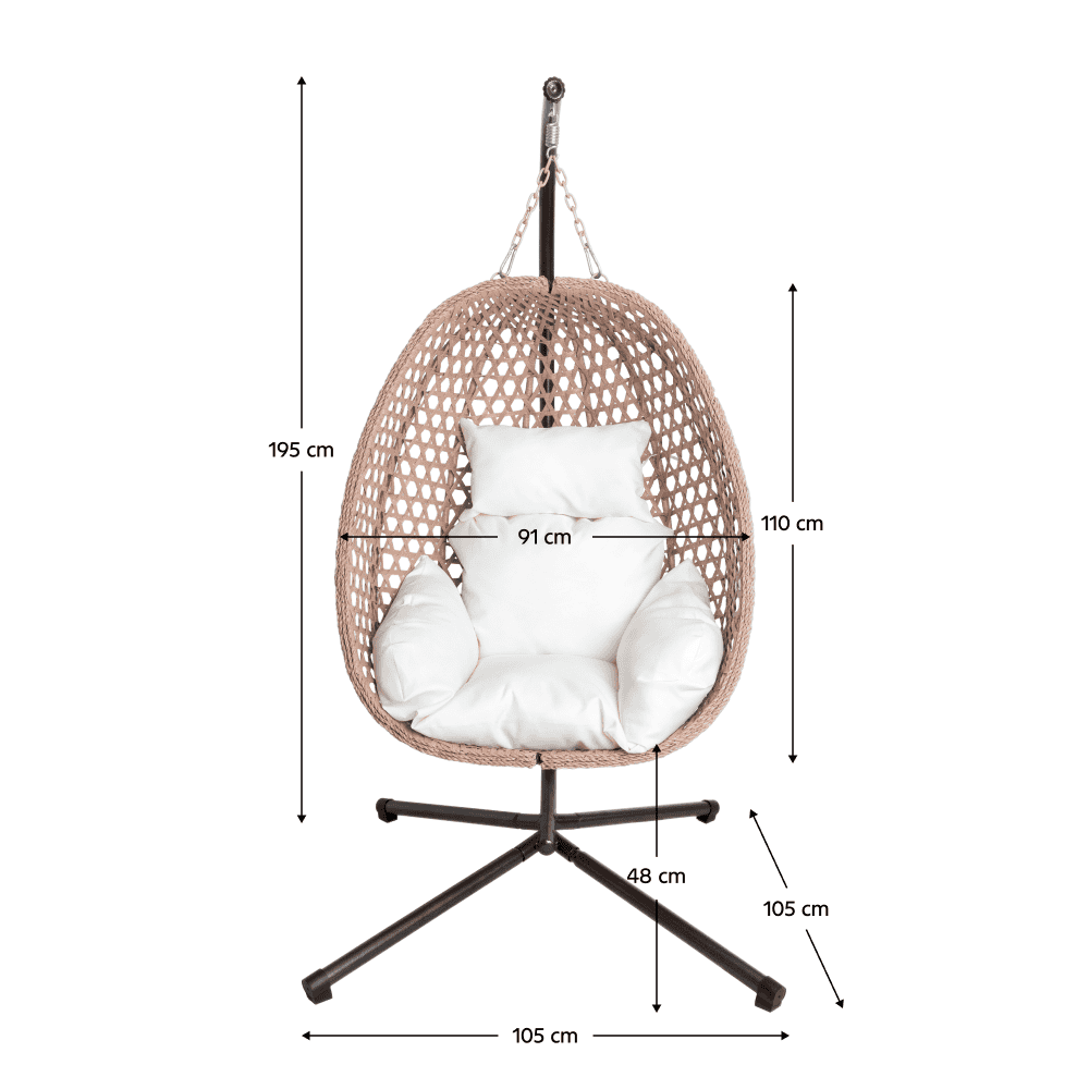 Material: oţel/ratan tehnic/ţesătură Rezistenţa ţesăturii la frecare conform testului Martindale: 95 000 de cicluri de frecare Culoare: cupru/maro/crem Dimensiuni (lxAxh): 105x105x195 cm Dimensiuni ou (lxAxh): 91x59x110 cm Înălţimea părţii de şezut: 48 cm Portanţă: 150 kg Pliabil În exterior recomandăm protejarea fotoliului cu o husă de protecţie sau o prelată Livrat cu perne Huse impermeabile Înainte de spălare, este necesar să scoateţi umplutura şi să spălaţi doar husa Husa are fermoar Husă detaşabilă Lavabilă la temperaturi de până la 40 °C Nu albiţi Nu uscaţi la uscător Nu călcaţi Nu curăţaţi chimic Livrat dezasamblat