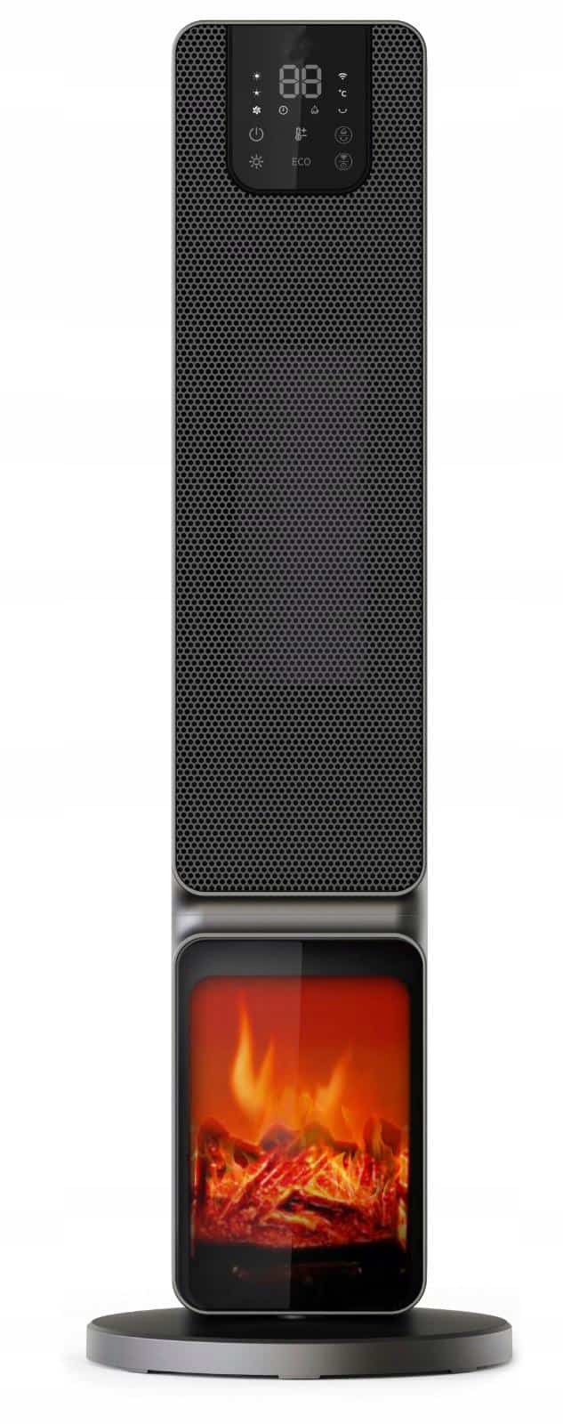 - V 50/60Hz Comanda de la distanta Semineu electric activat independent Oprire de urgenta in caz de rasturnare sau supraincalzire Oscilatie automata Mod ventilator Conectivitate WiFi Reglarea temperaturii in intervalul 15-45 grade Celsius Timer (1-12h) Inaltime: 66 cm