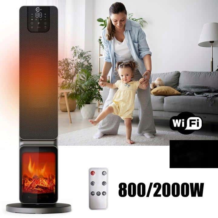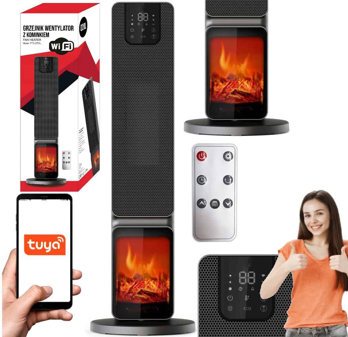 Semineu electric, 2000W, 2 trepte, cu termostat si telecomanda, timer, dispay LED, WiFi Mob360