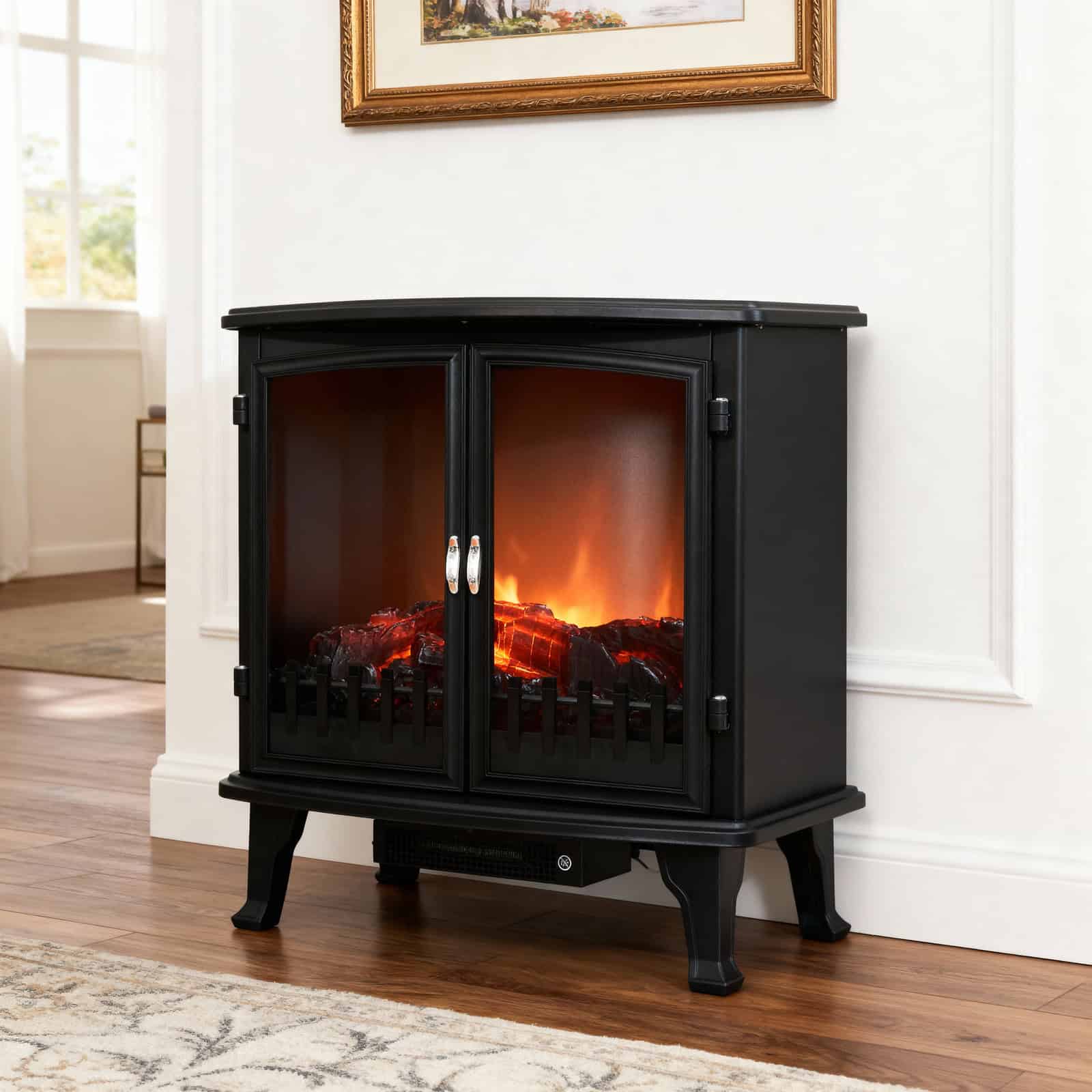 Semineu electric cu efect de flacara, 1800W, 2 trepte, ventilator incorporat, 63x35x70 cm, negru Mob360