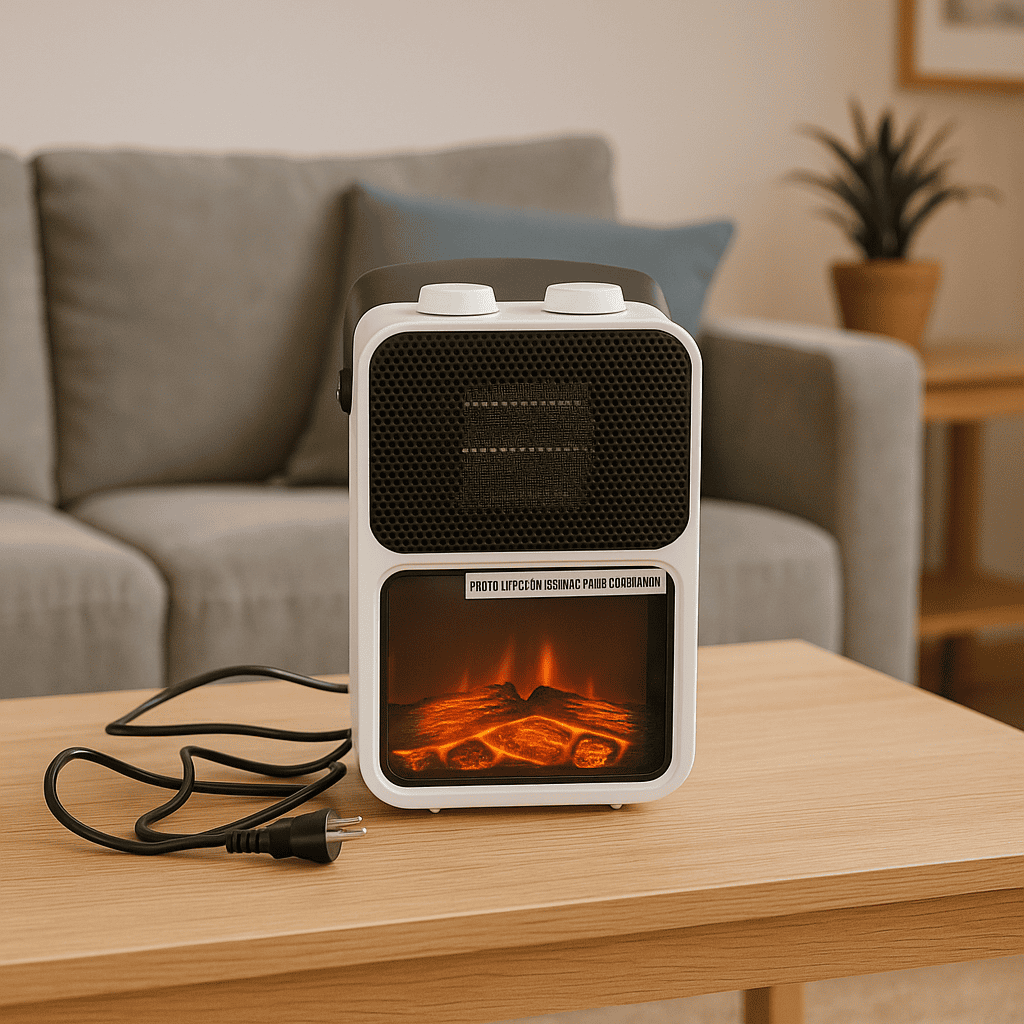 Semineu electric cu efect de flacara, 600-1200 W, 14x21x36 cm, alb Mob360 – produs disponibil în magazinul Mob360.