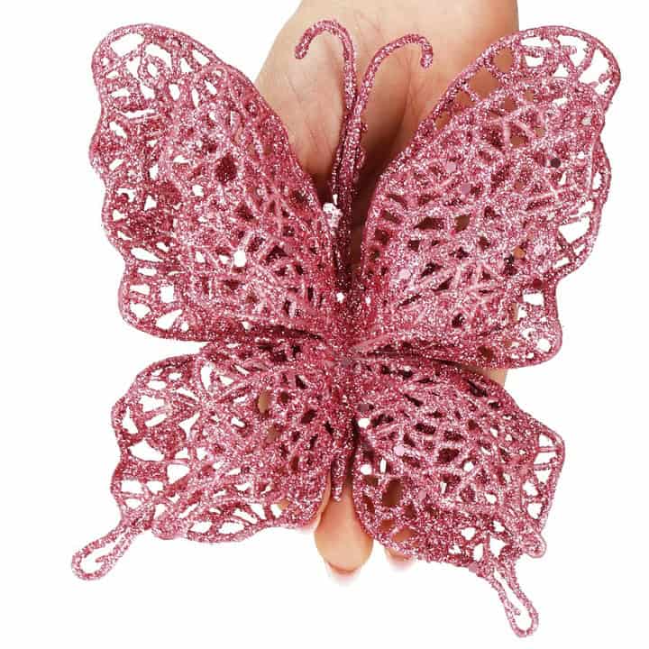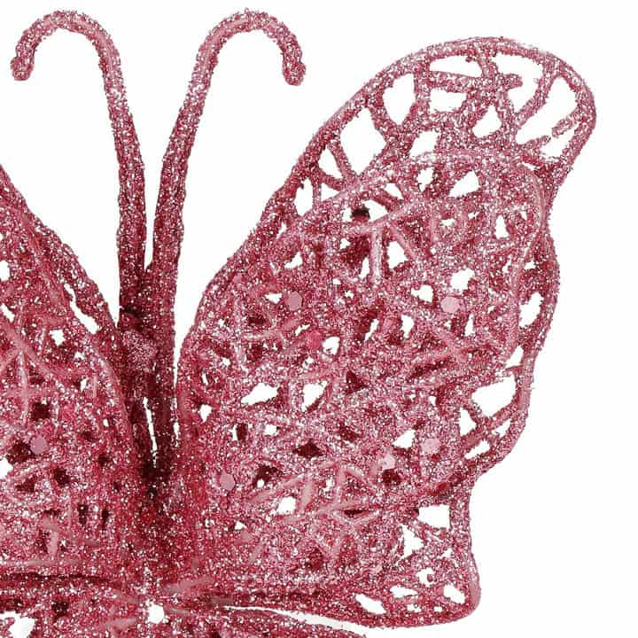 Set 10 ornamente pentru bradul de Craciun, Fluture cu sclipici, 16cm, roz Mob360