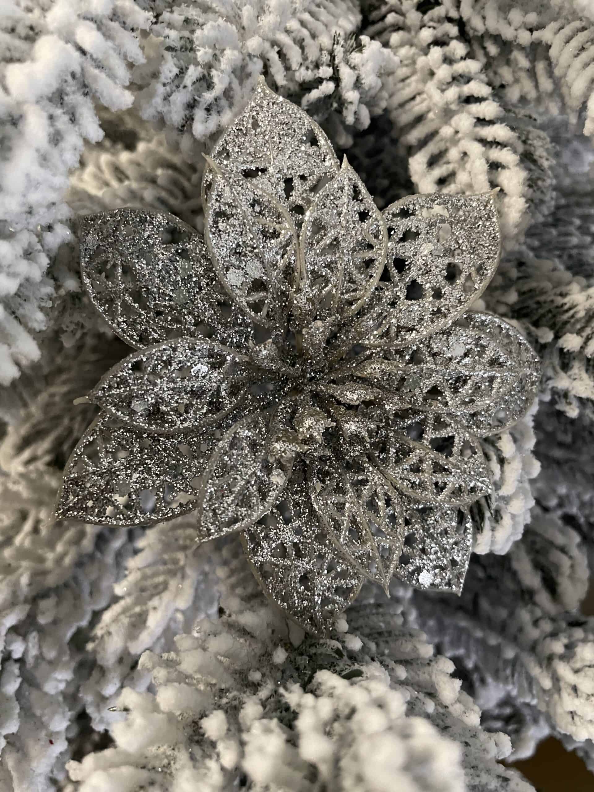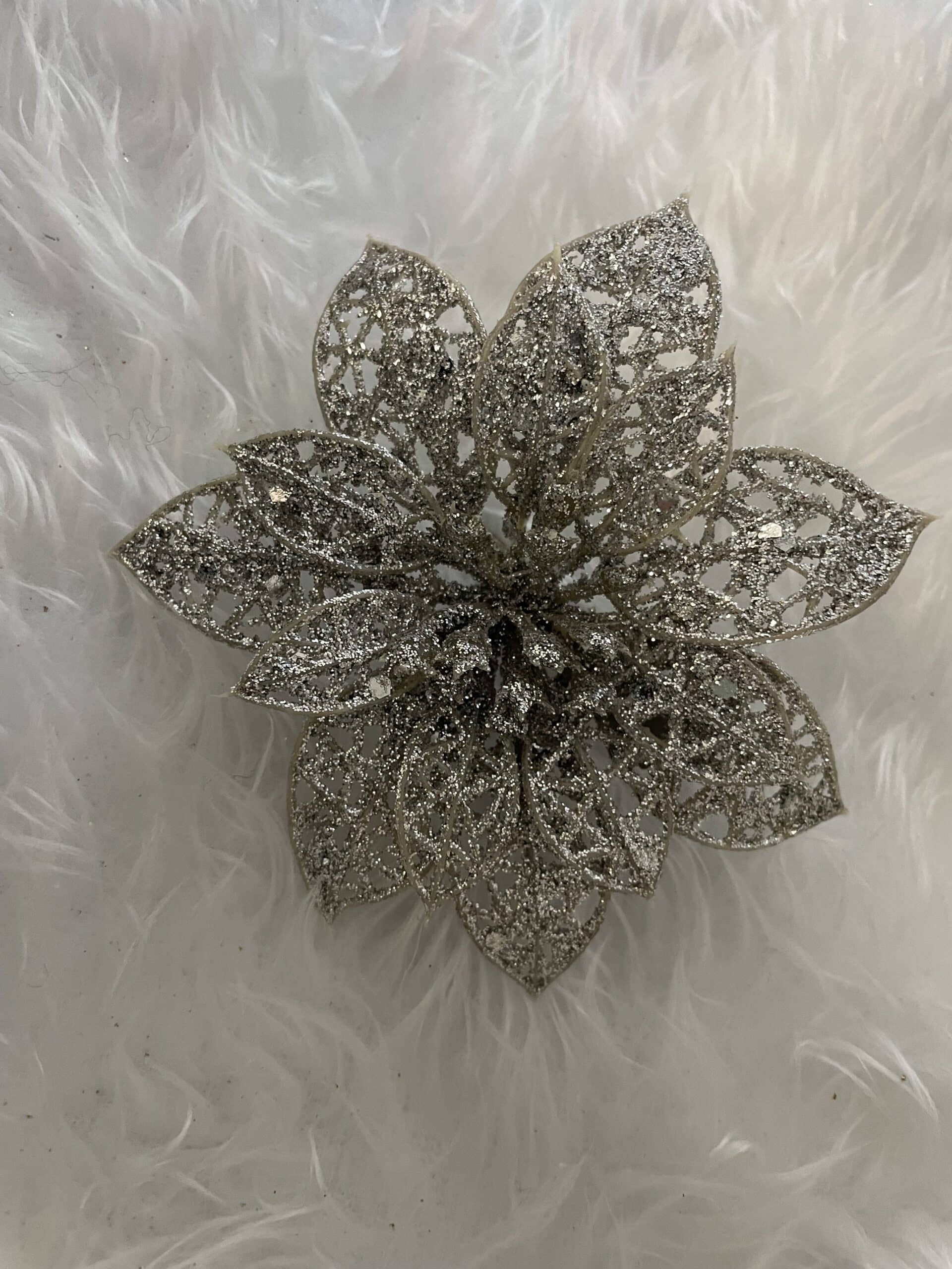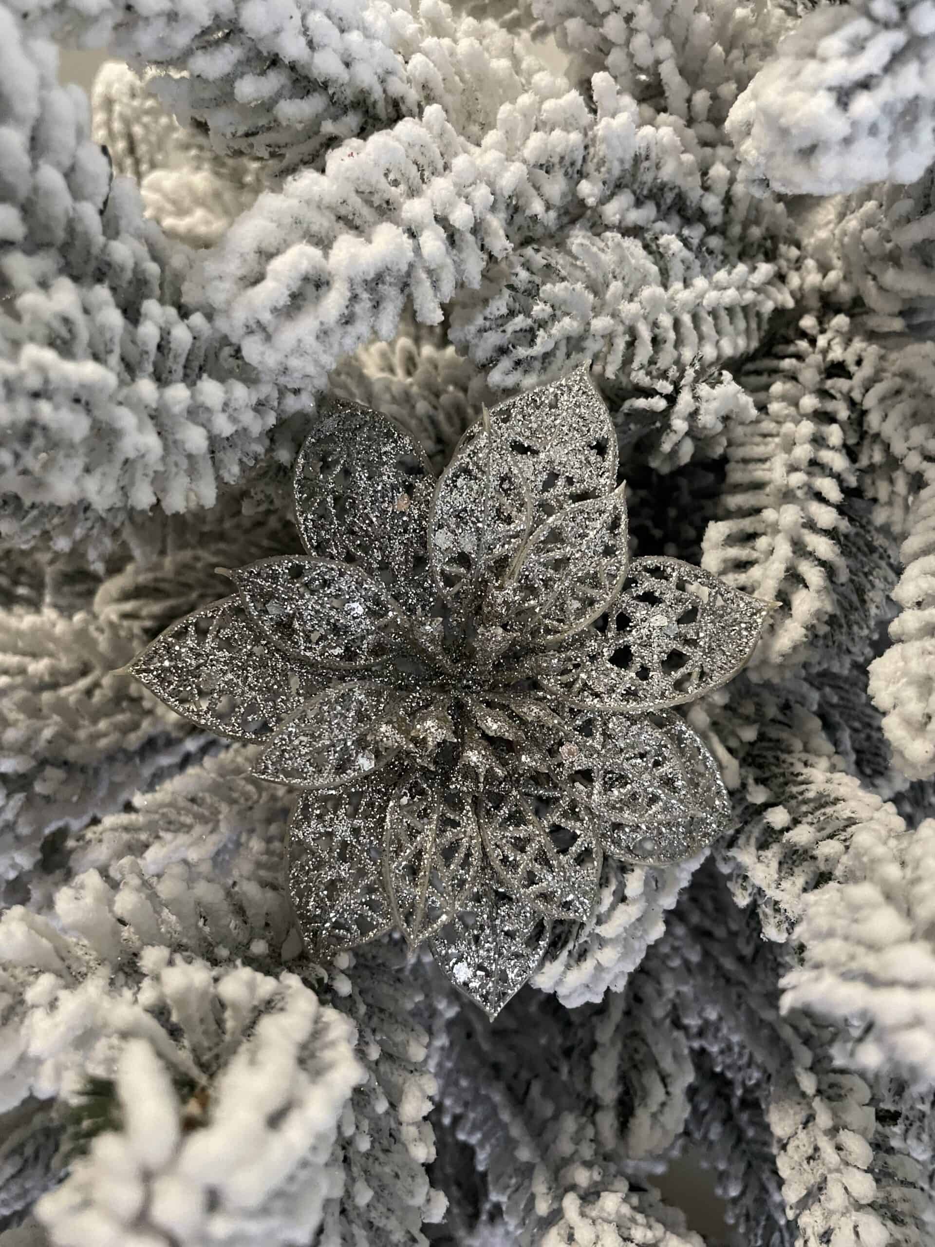 Set 10 ornamente pentru bradul de Craciun, stea Poinsettia, 10cm, argintiu Mob360