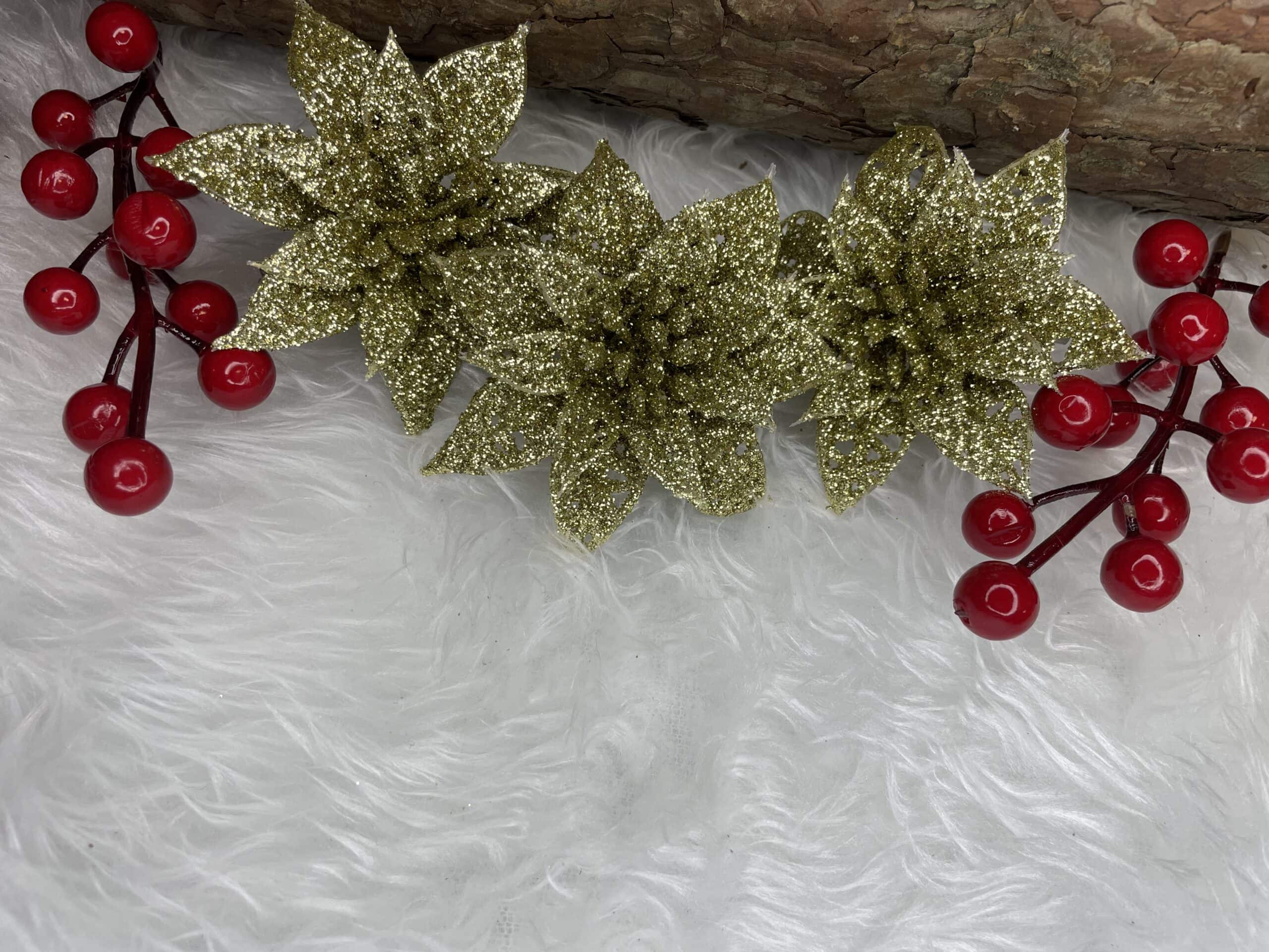 Set 10 ornamente pentru bradul de Craciun, stea Poinsettia, 14cm, auriu Mob360 – produs disponibil în magazinul Mob360.