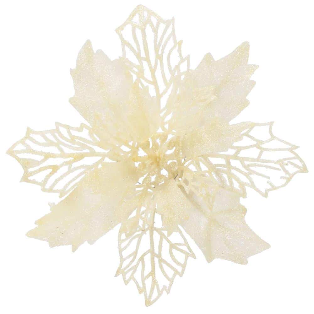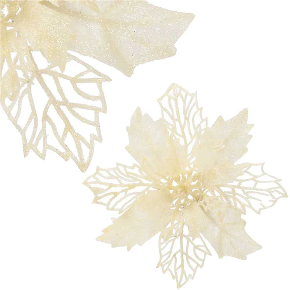 Set 10 ornamente pentru bradul de Craciun, stea Poinsettia, 16cm, crem Mob360 – produs disponibil în magazinul Mob360.