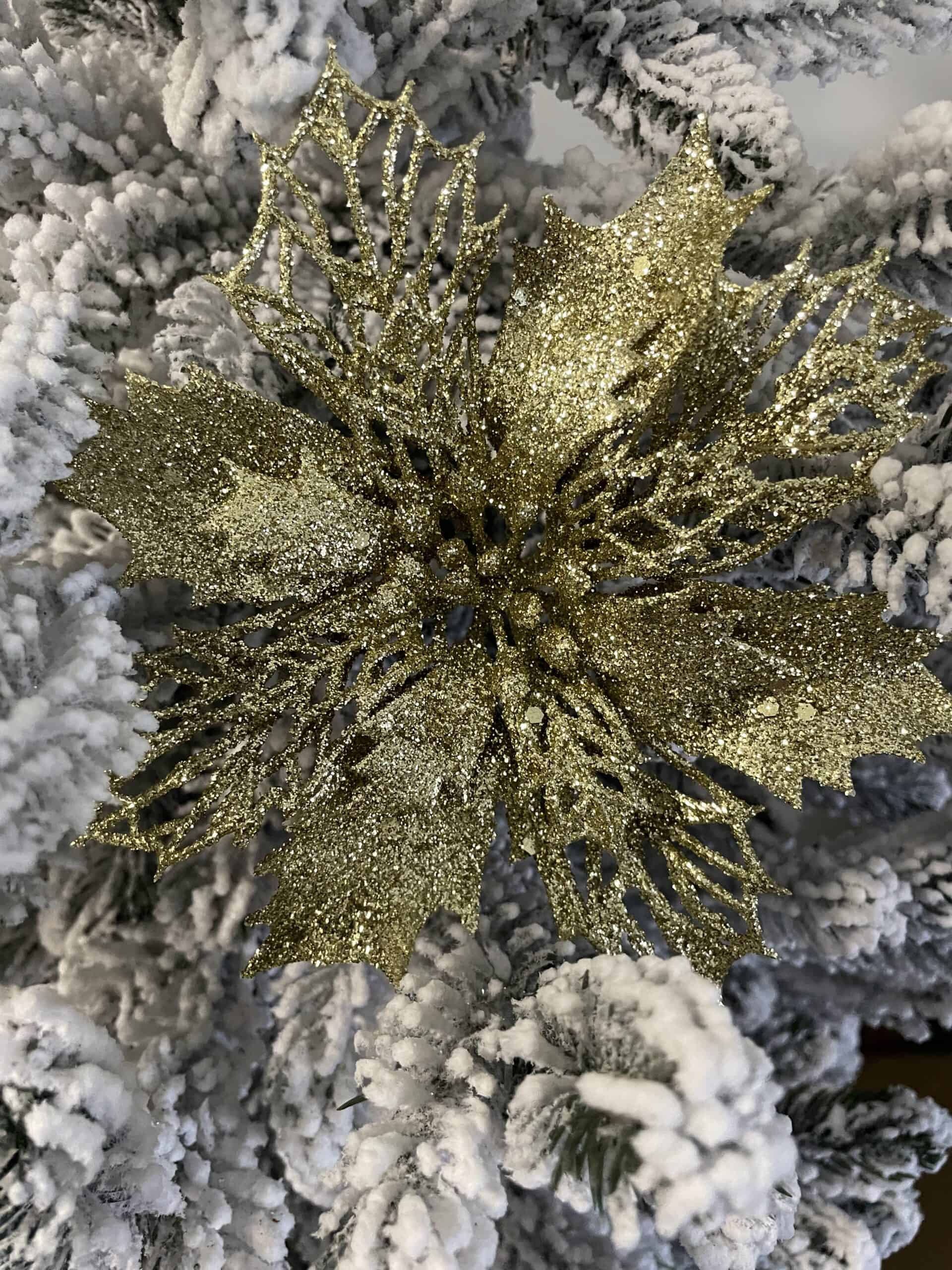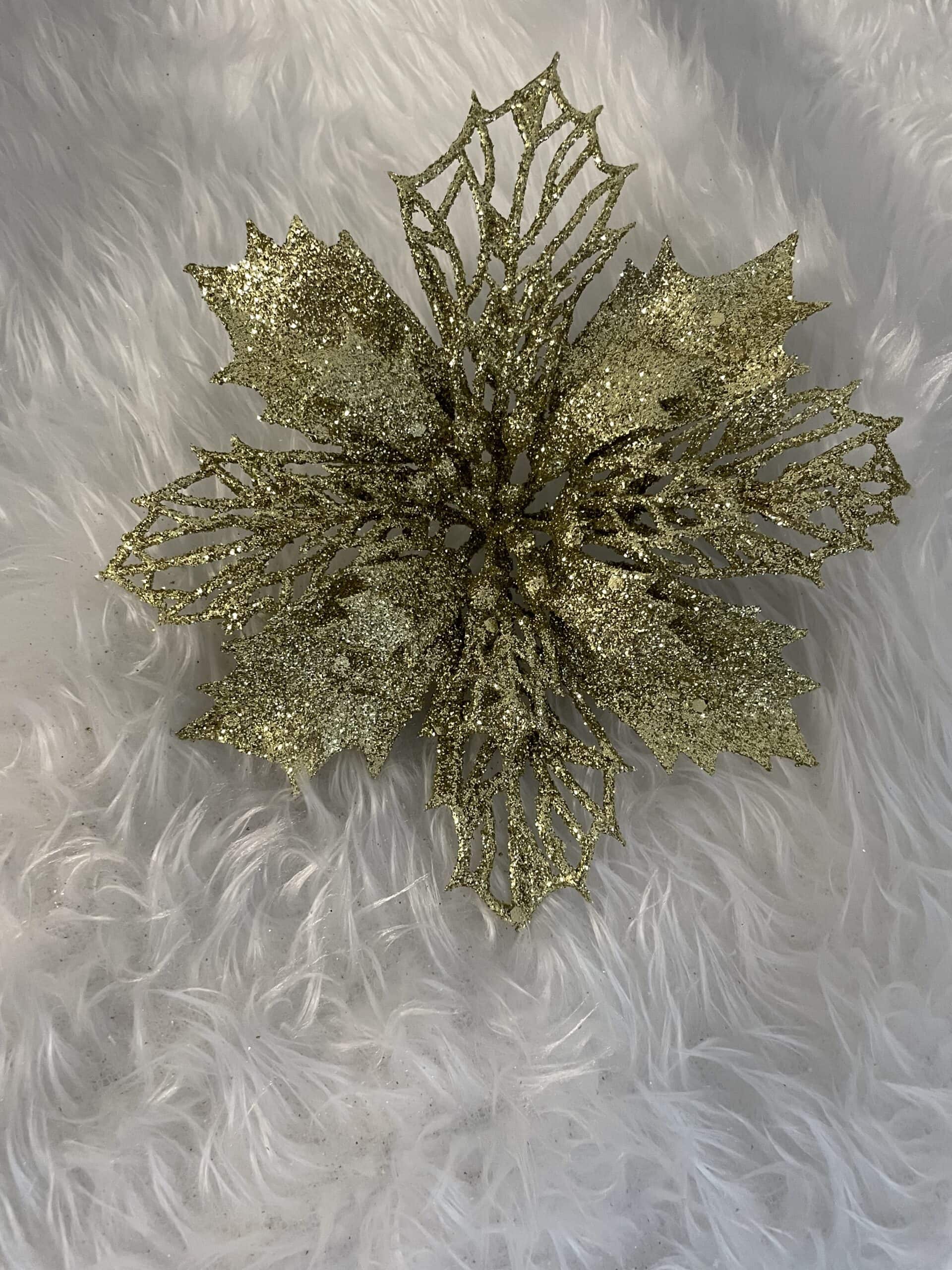 Set 10 ornamente pentru bradul de Craciun, stea Poinsettia, 16cm, galben auriu Mob360
