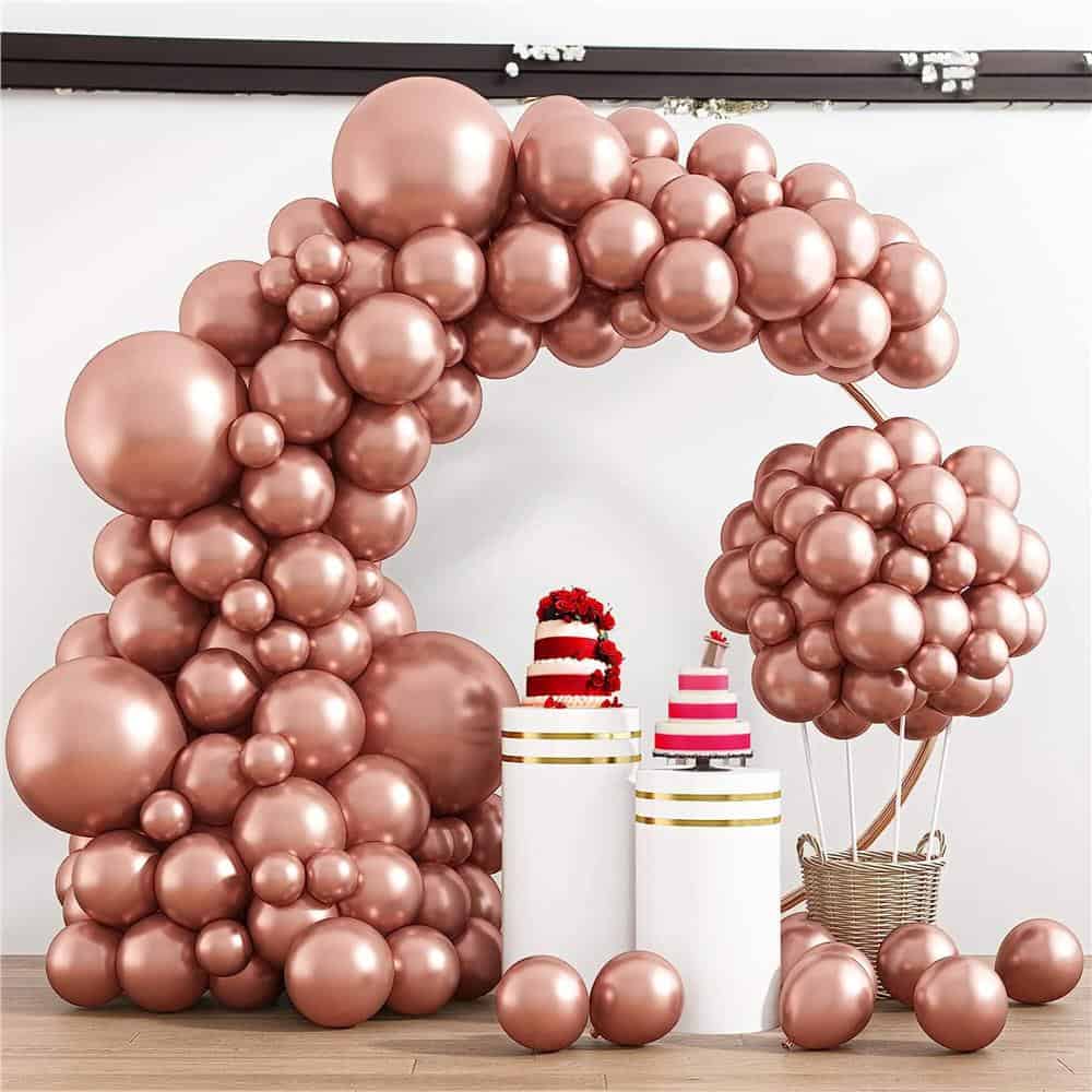 Parametrii: Numar de piese per set: 100 Culoare: auriu roz metalic Inaltime dupa umflare: aprox. 40 cm Material: latex Baloanele sunt impresionante, ele pot crea decoratiuni multicolore cu un impact vizual mare pe care oaspetii le pot vedea de la intrare, de pe scaun sau dansand. Decoratiunile din baloane dau o deosebita culoare atmosferei, petrecerea va fi magica. Culoare intensa atunci cand baloanele sunt umflate Festivitatea ta va arata gata de instagram-ready! Buchetele mari de baloane colorate dau ringului de dans un farmec aparte. Arcade decorate cu baloane vor pune in prim plan masa sarbatoritilor si intreaga incapere. Indiferent daca doresti sa decorezi o mica petrecere, o receptie sau o nunta, decoratiunile noastre cu baloane vor transforma evenimentul intr-o experienta extraordinara.