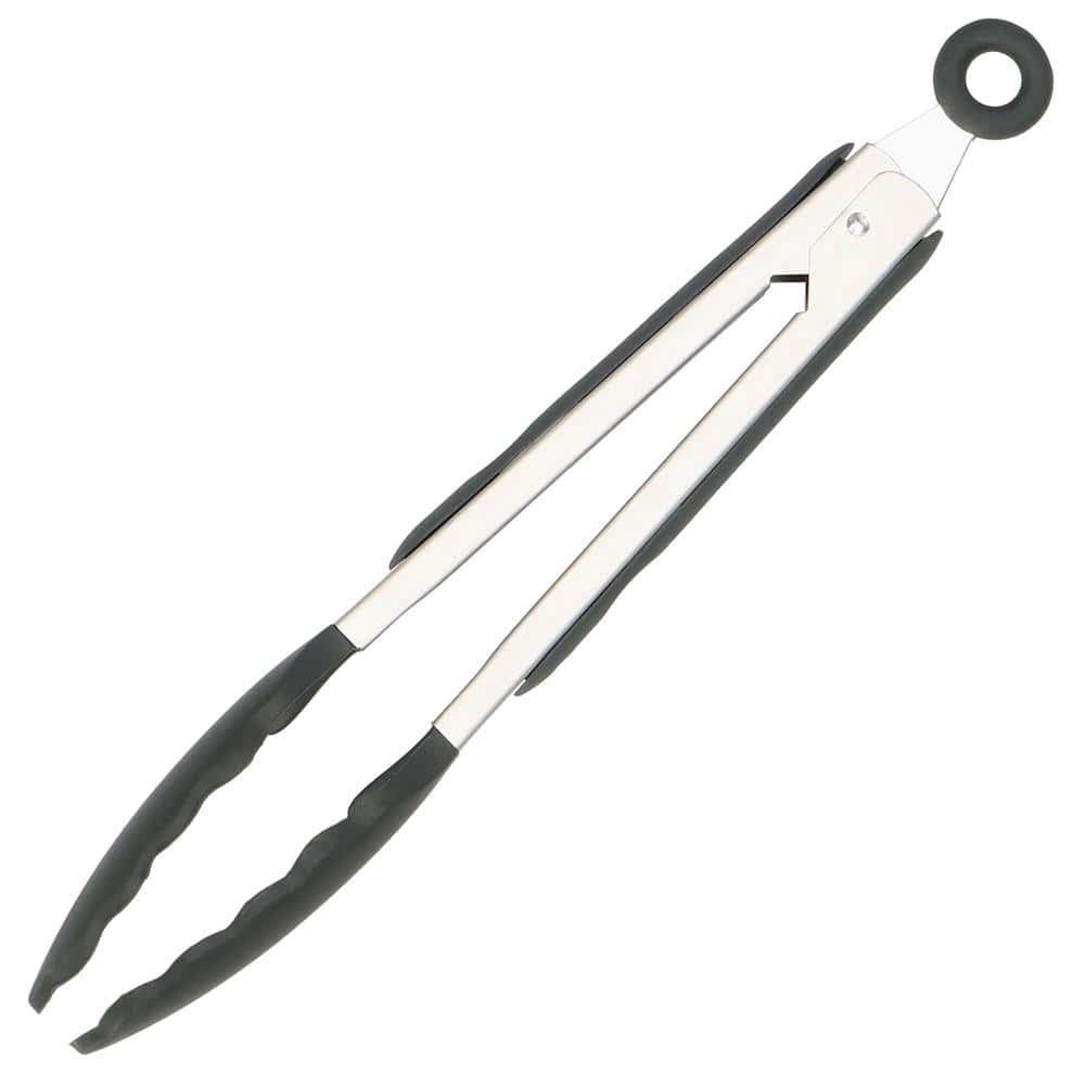 Set 12 ustensile de bucatarie din silicon termorezistent si maner din bambus, gri Mob360