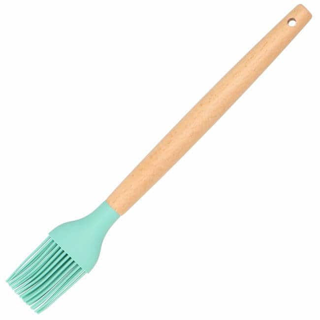 Toate capetele ustensilelor sunt fabricate din silicon durabil, moale si flexibil, care rezista la temperaturi ridicate de pana la 230°C, prevenind astfel topirea ustensilelor.Manerul din lemn natural este neted si confortabil la atingere si spre deosebire de alte materiale, previne transferul de caldura in timpul procesului de gatire, protejandu-va astfel mainile.Setul include un suport pentru ustensile care ajuta la organizarea si depozitarea acestora. Astfel, ustensilele pot fi pastrate la indemana, pe blatul din bucatarie.Fiecare maner din lemn este prevazut cu un orificiu ce permite agatarea ustensilelor intr-un suport cu carlige pe perete. Setul contine: Suport depozitare – inaltime 16,5 cm, diametru aprox 11 cm Cleste – inaltime 25 cm, lungime maner 10 cm, latime maxima aprox 6 cm Polonic – inaltime totala 32 cm, lungime maner 18,5 cm, adancime oala 4 cm Lingura – inaltime totala 31,5 cm, lungime maner 18,5 cm, diametru Lingura perforata – inaltime totala 32 cm, latimea lamei 8 cm, lungime maner 18,5 cm Spatula fara gauri – inaltime totala 32 cm, latimea lamei 8 cm, lungime maner 18,5 cm Spatula pentru prajituri – inaltime totala 31,5 cm, latime spatula 6,5 cm, lungime maner 18,5 cm Spatula rotunjita pe o parte – inaltime totala 32 cm, lungime maner 18,5 cm Lingura pentru paste – inaltime totala 31,5 cm, lungime maner 18,5 cm, latime strecuratoare 6 cm Pensula pentru ungere – inaltime totala 27,5 cm, lungime maner 18,5 cm Strecurator / skimmer – cu gauri, inaltime totala 31,5 cm, lungime maner 18,5 cm, latime lingura 7 cm Tel – inaltime totala 28 cm, partea de prindere 12,5 cm, latimea grapperului 3,5 cm